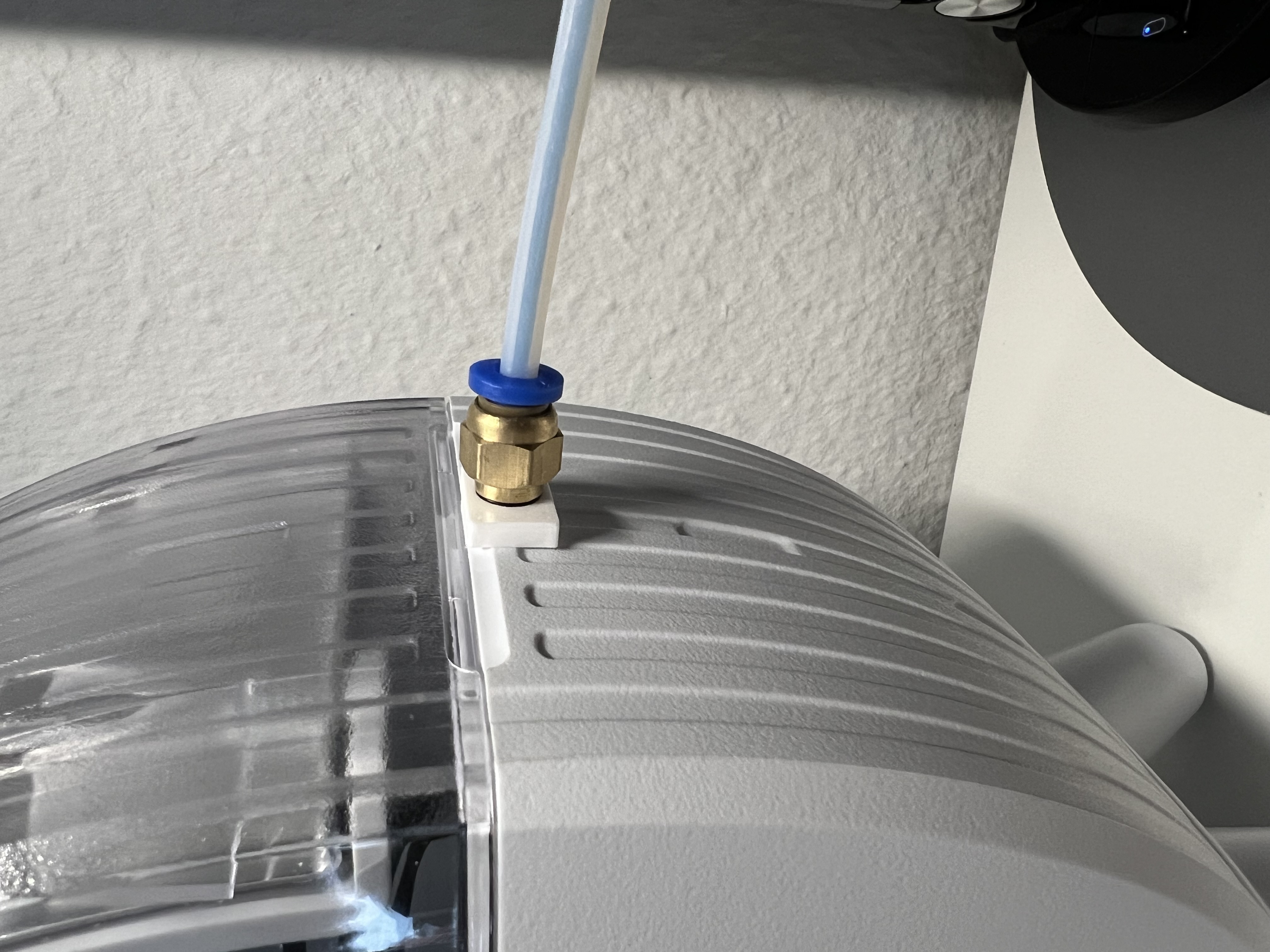 Phần in 3D được cung cấp có thể sử dụng trực tiếp bằng cách cắm ống PTFE vào mà không cần đầu nối Festo, nhưng nó sẽ không bền bằng. Đầu nối Festo sẽ cắt vào ren của bộ phận PETG. Lỗ bên trong có hình nón để dẫn filament tốt hơn.