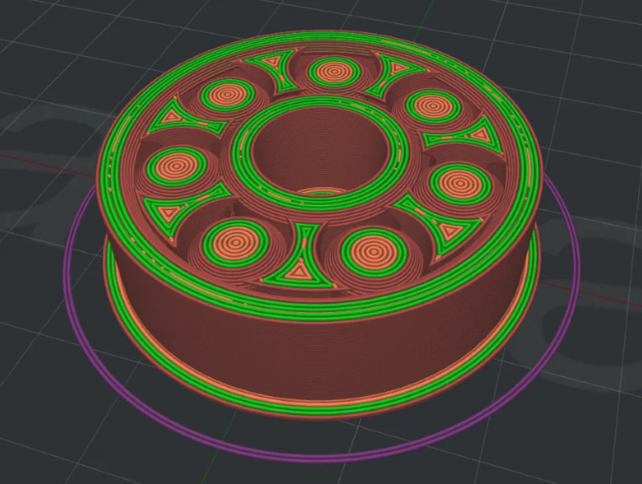 Về công dụng của các vòng bi này, chúng phù hợp nhất cho tải trọng hướng tâm nhẹ, ví dụ: tôi có 6 cái của thiết kế cũ trong bộ chuyển đổi cuộn 3kg và một cái trong một con quay đơn giản. Chúng cũng đôi khi có thể chịu tải trọng hướng trục tùy thuộc vào cài đặt; nói chung dung sai tốt và chất lượng in giúp ích ở đây. Ngoài ra, chúng thực sự chỉ là một vật thể thú vị để in, với một số giá trị giáo dục.