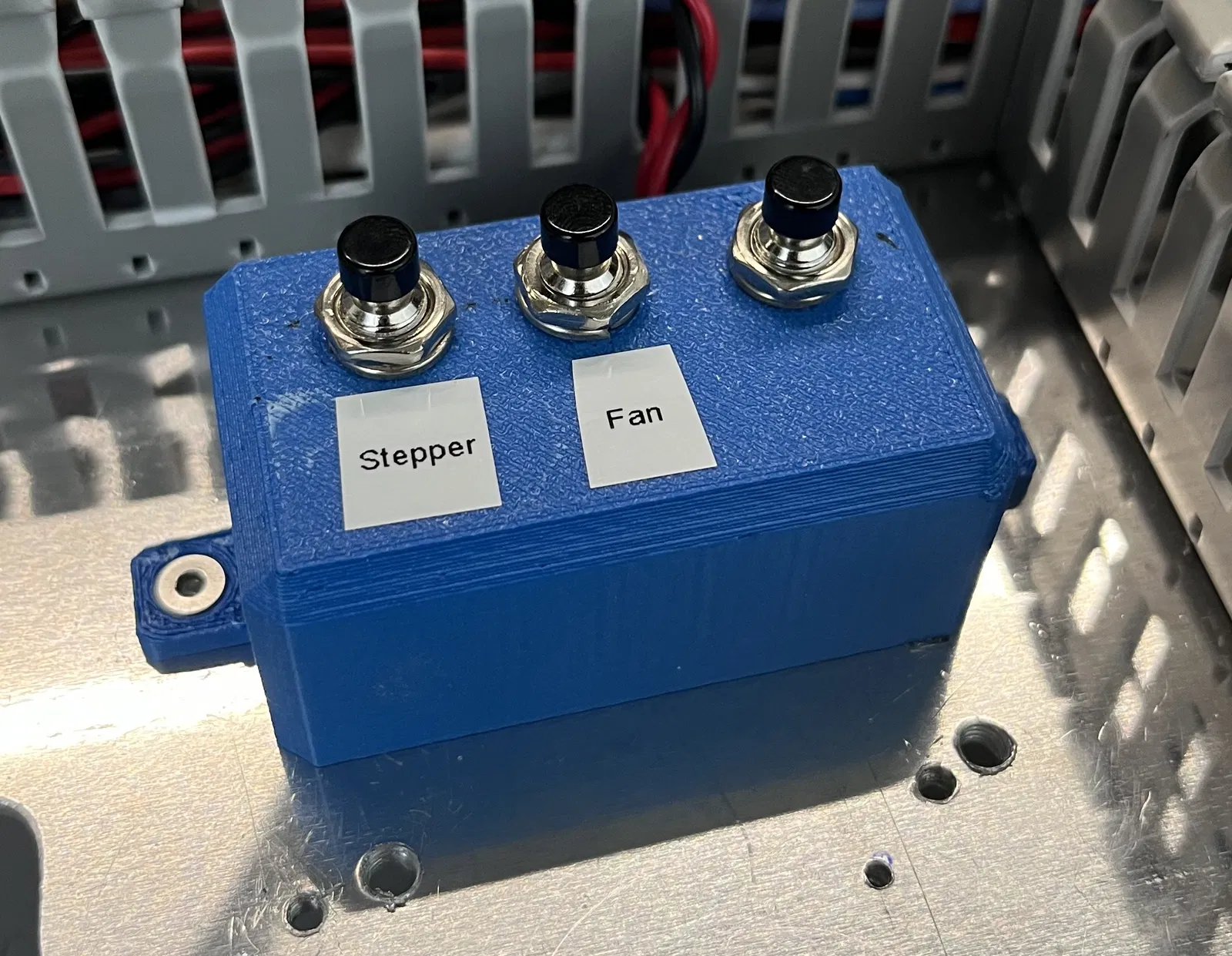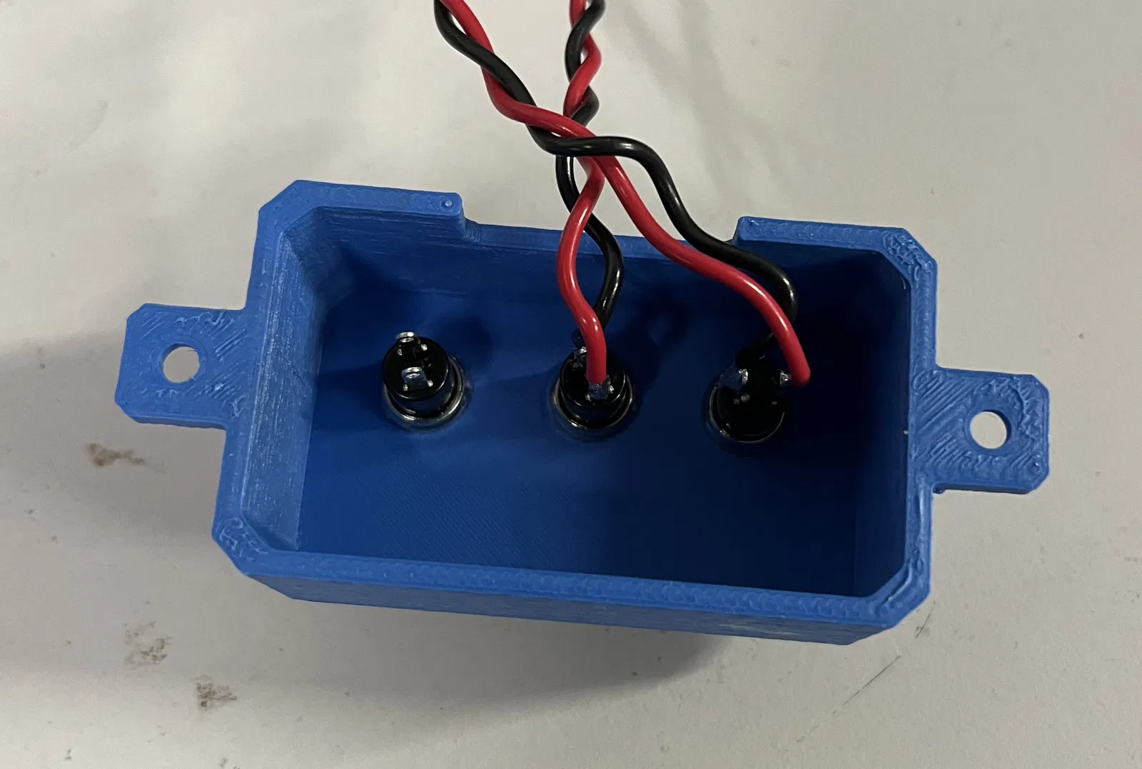 Hộp đựng nút nhấn 3D nhỏ gọn, dùng để gắn chắc chắn ba nút nhấn 8mm lên một bề mặt. Có chỗ để dán nhãn hoặc viết mô tả cho từng nút. Lý tưởng cho các ứng dụng yêu cầu gắn nút nhấn đáng tin cậy.