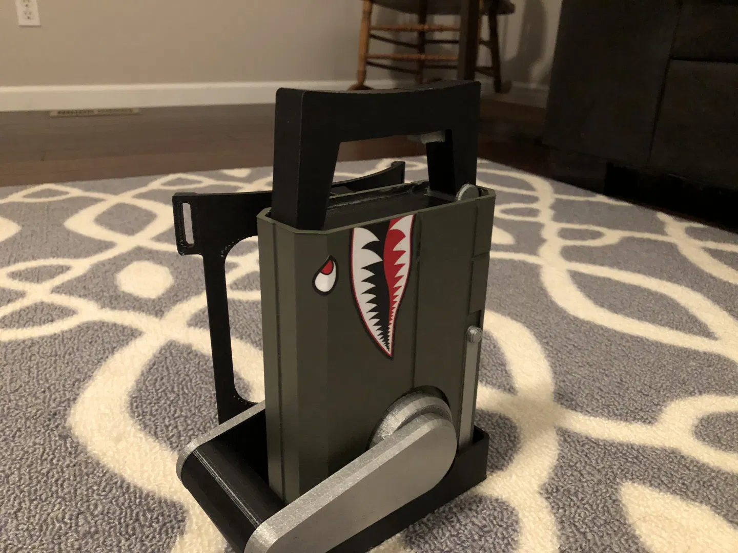 Tao lấy ý tưởng từ tranh concept của khẩu Fortnite Minigun khi gấp lại để làm cái này. Tao có mua mấy cái sticker Warhawk trên Etsy, chắc cỡ 4 inch á. Giờ tao còn phải kiếm dây nylon với vài cái khóa để đeo vô chân nữa. Hy vọng mọi người thích mẫu này và chúc anh em in ấn vui vẻ.