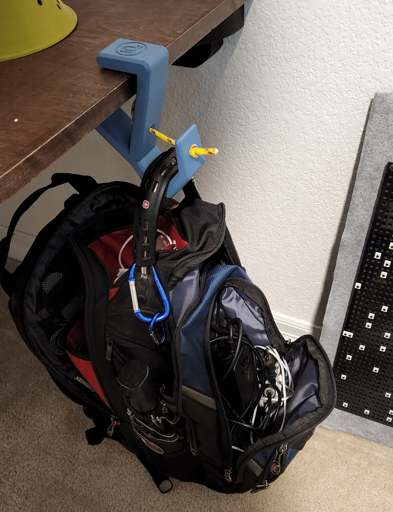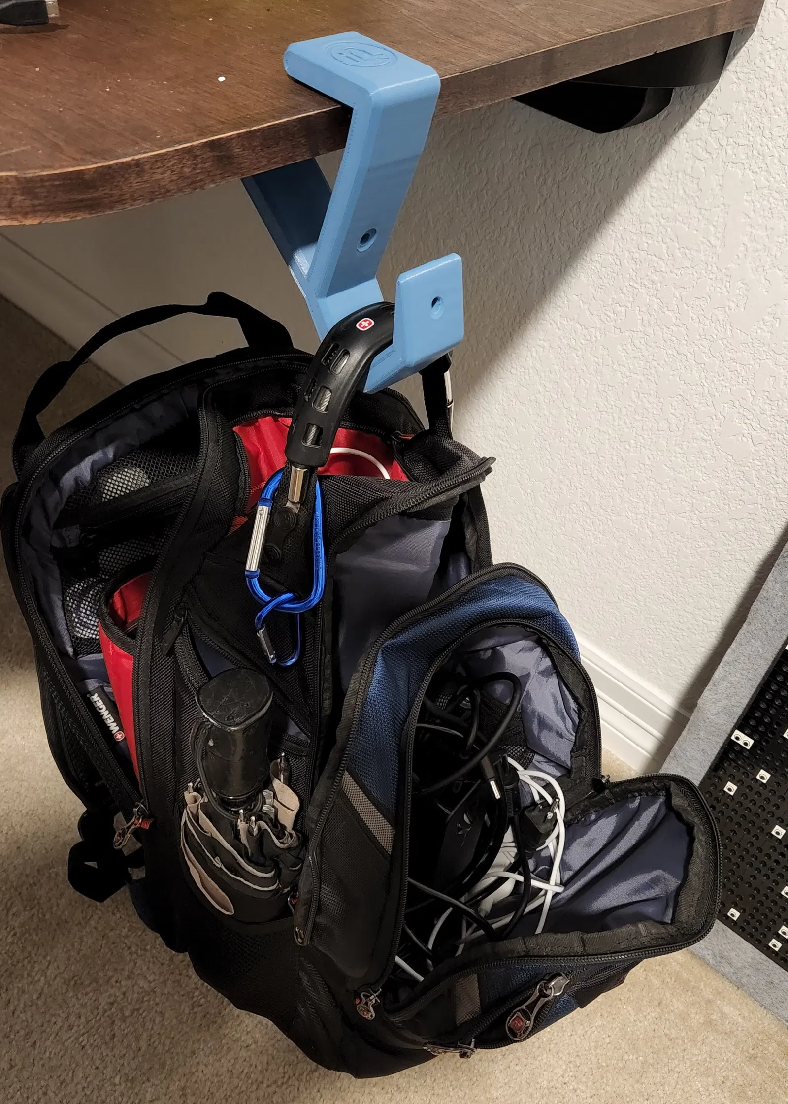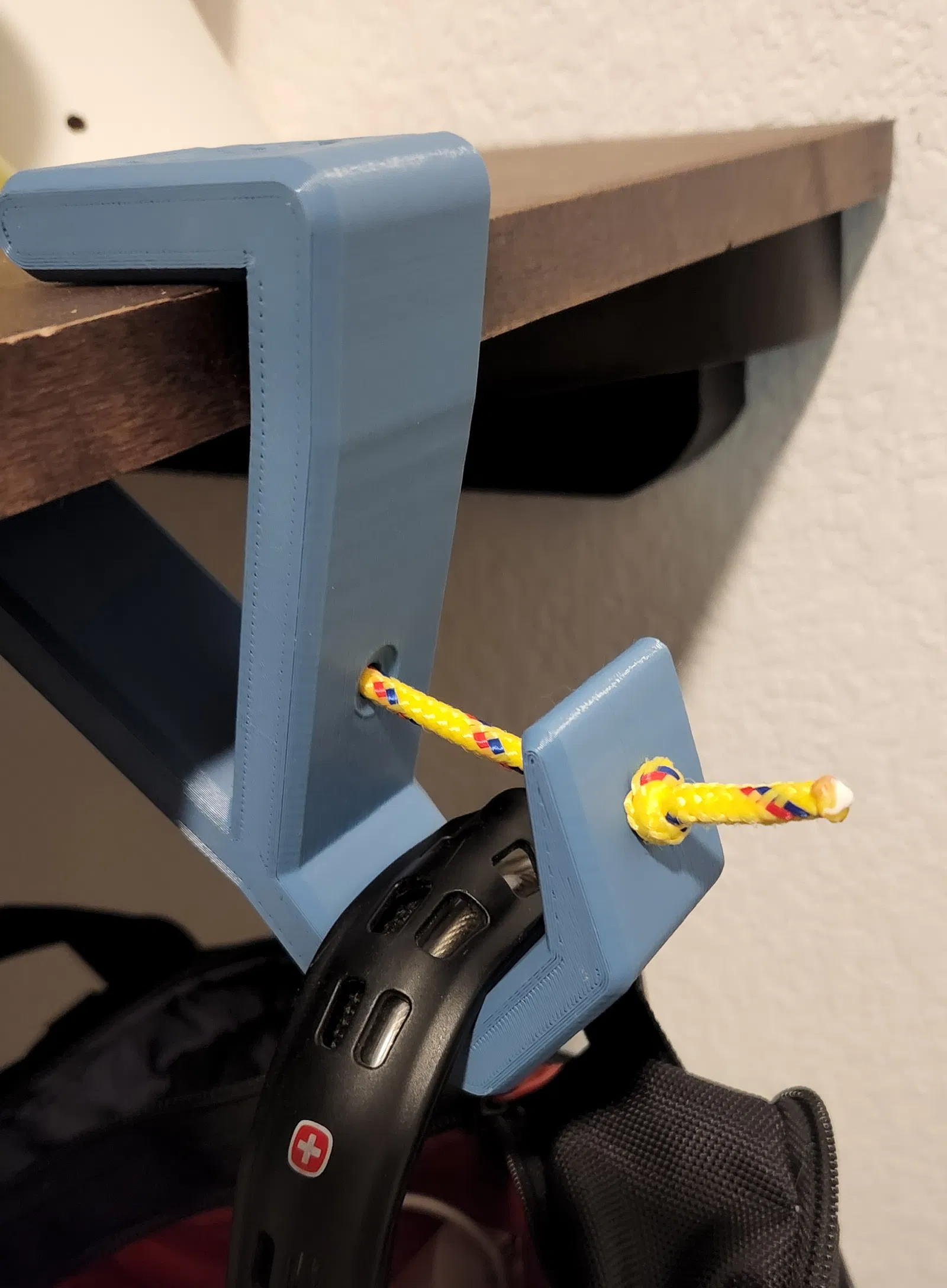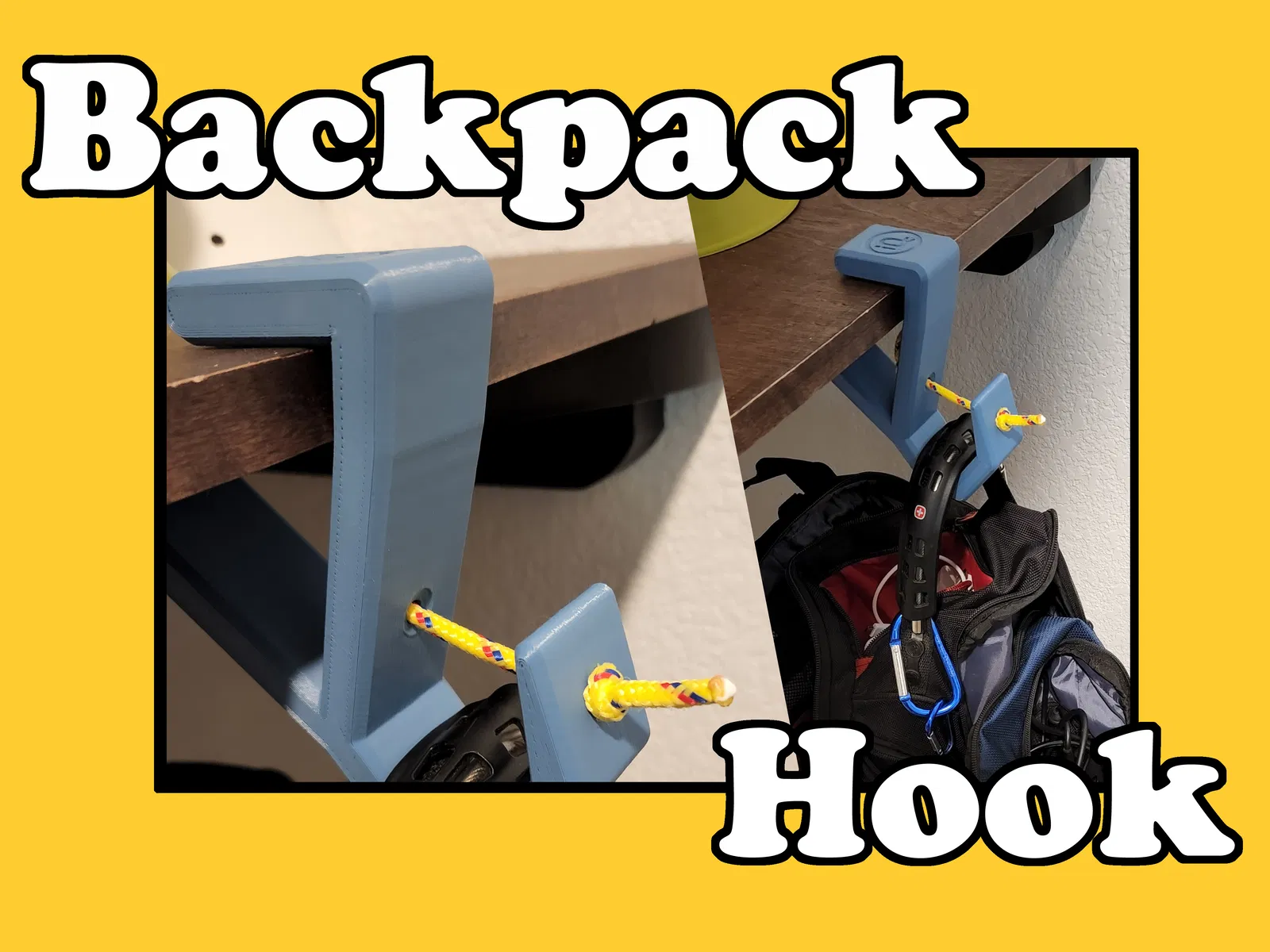 Móc treo ba lô đơn giản, giúp giữ đồ đạc của bạn không bị chạm đất. Có lỗ để buộc dây, dễ dàng gắn cố định vào ba lô hoặc túi xách. Lưu ý in với vài lớp perimeters và 50% gyroid để tăng độ bền.