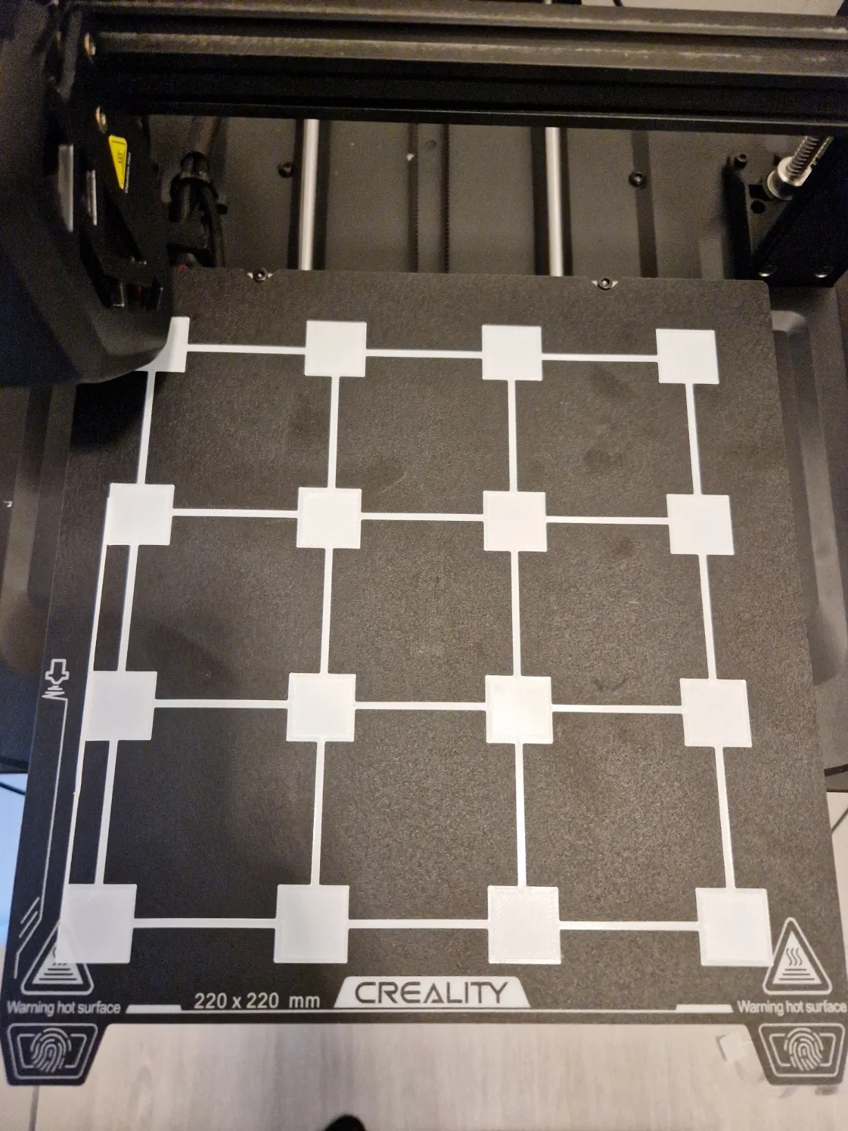 Nó gồm một bộ gồm 4x4 ô vuông 20mm, cao 0.2mm. Thiết kế để in ở độ cao lớp 0.2mm.