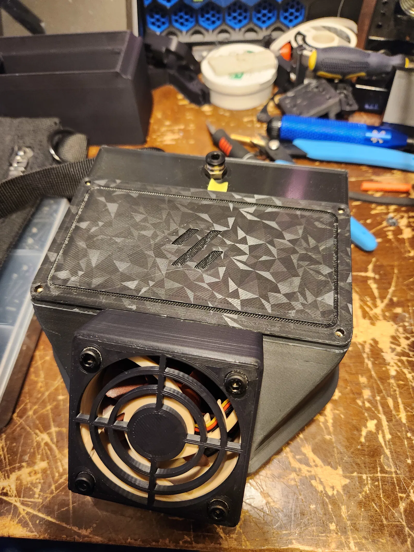 Bản sửa đổi này thay thế phần tử lọc carbon đi kèm với Voron 2.4 gốc bằng một ống chứa viên carbon hoạt tính và giá đỡ cho Bộ lọc HEPA dòng Roomba 8xx/9xx. Bộ lọc Carbon gốc rất xốp và cho phép mùi ABS đáng kể thoát ra khỏi buồng. Thiết kế ban đầu cung cấp rất ít khả năng lọc các hạt siêu mịn (UFP) thường được tạo ra trong quá trình in 3D. Không cần sửa đổi nhà ở ban đầu.