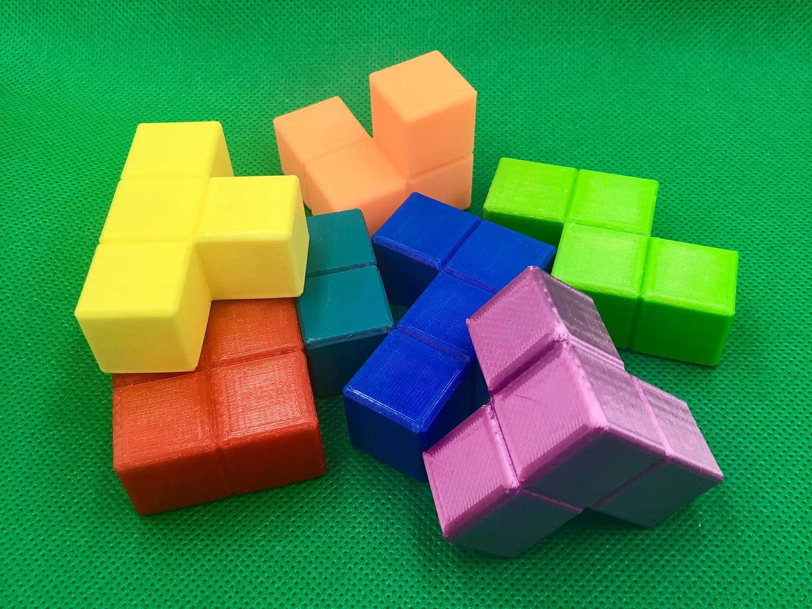 Đây là một trò chơi giải đố tên là Soma Cube, do Piet Hein phát minh vào năm 1933. Nó bao gồm bảy khối đa diện khác nhau. Tất cả các mảnh được tạo thành từ các khối đơn vị phải được lắp ráp thành một khối 3x3x3. Trong trường hợp gặp sự cố, hãy xem một khối đã hoàn thành, có sẵn để xem trong một tệp riêng.