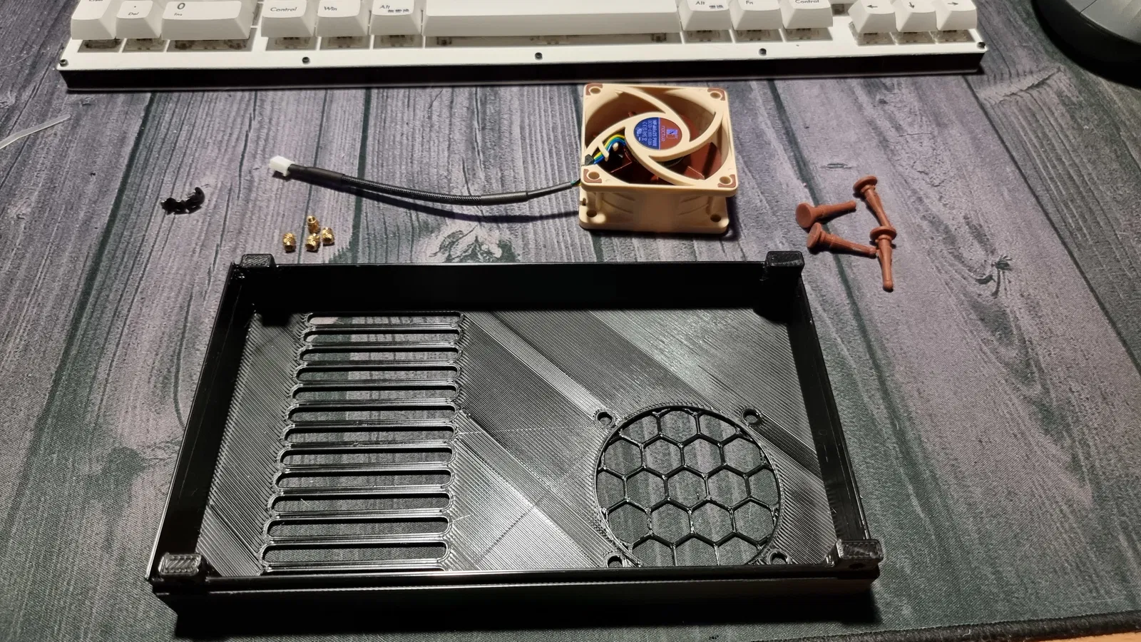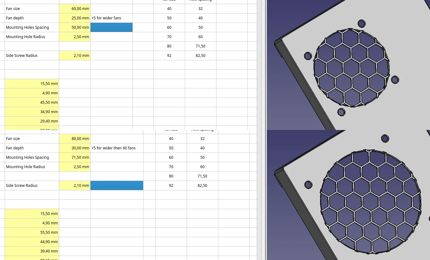 Chắn nguồn dạng parametric cho mọi kích cỡ quạt, bạn có thể tùy chỉnh bằng phần mềm CAD miễn phí. Phiên bản này dùng quạt 60mm giúp giảm tiếng ồn hiệu quả, có thêm nắp che dây riêng.