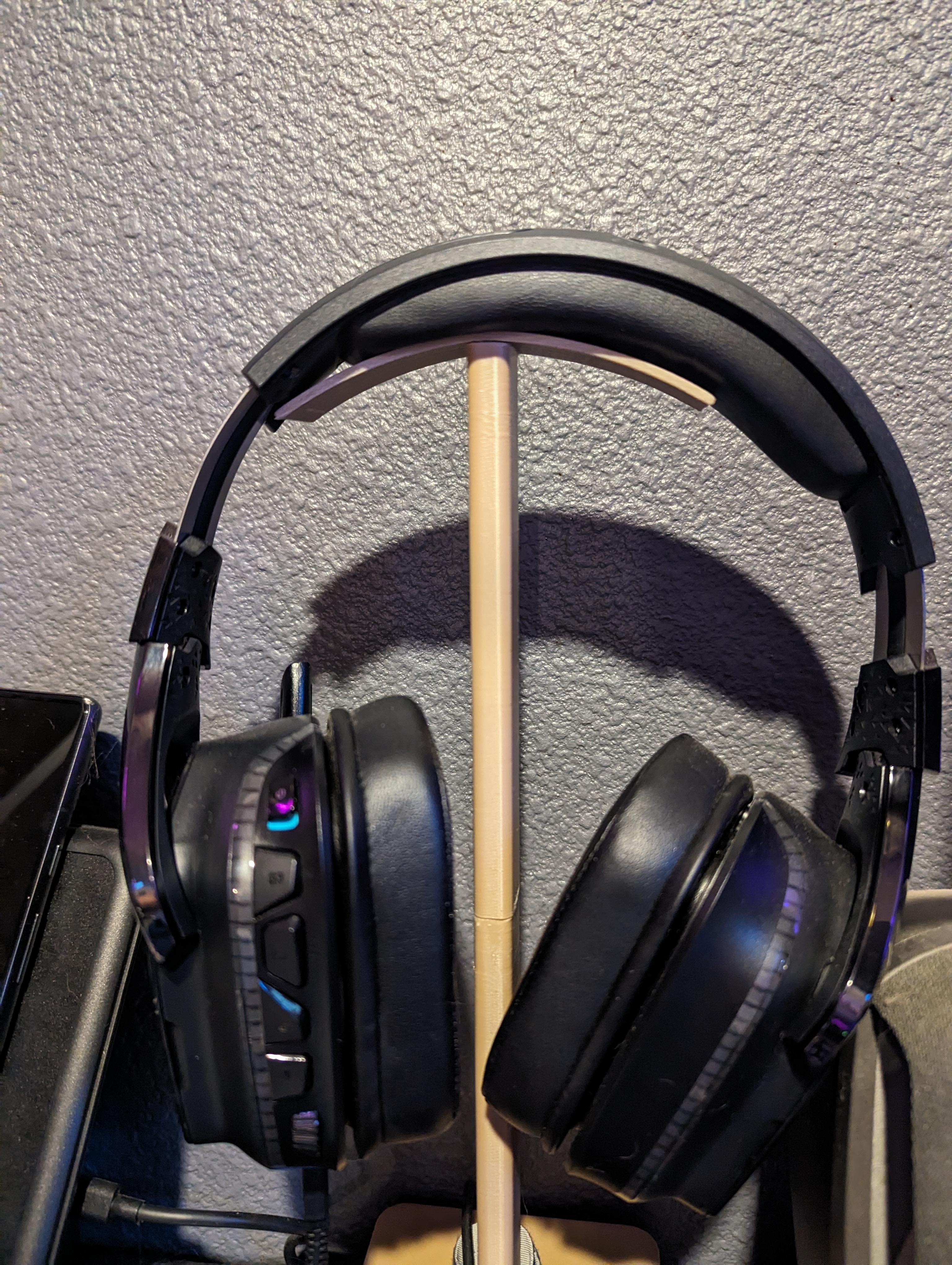 Tai nghe của tui sạc ở đáy chụp tai, mà cái đế tui mua nó không đủ cao nên nó bị cong dây. Nên tui chế cái này. Bạn sẽ cần keo siêu dính hoặc máy in có độ dung sai tốt hơn máy tui để các bộ phận khớp với nhau.