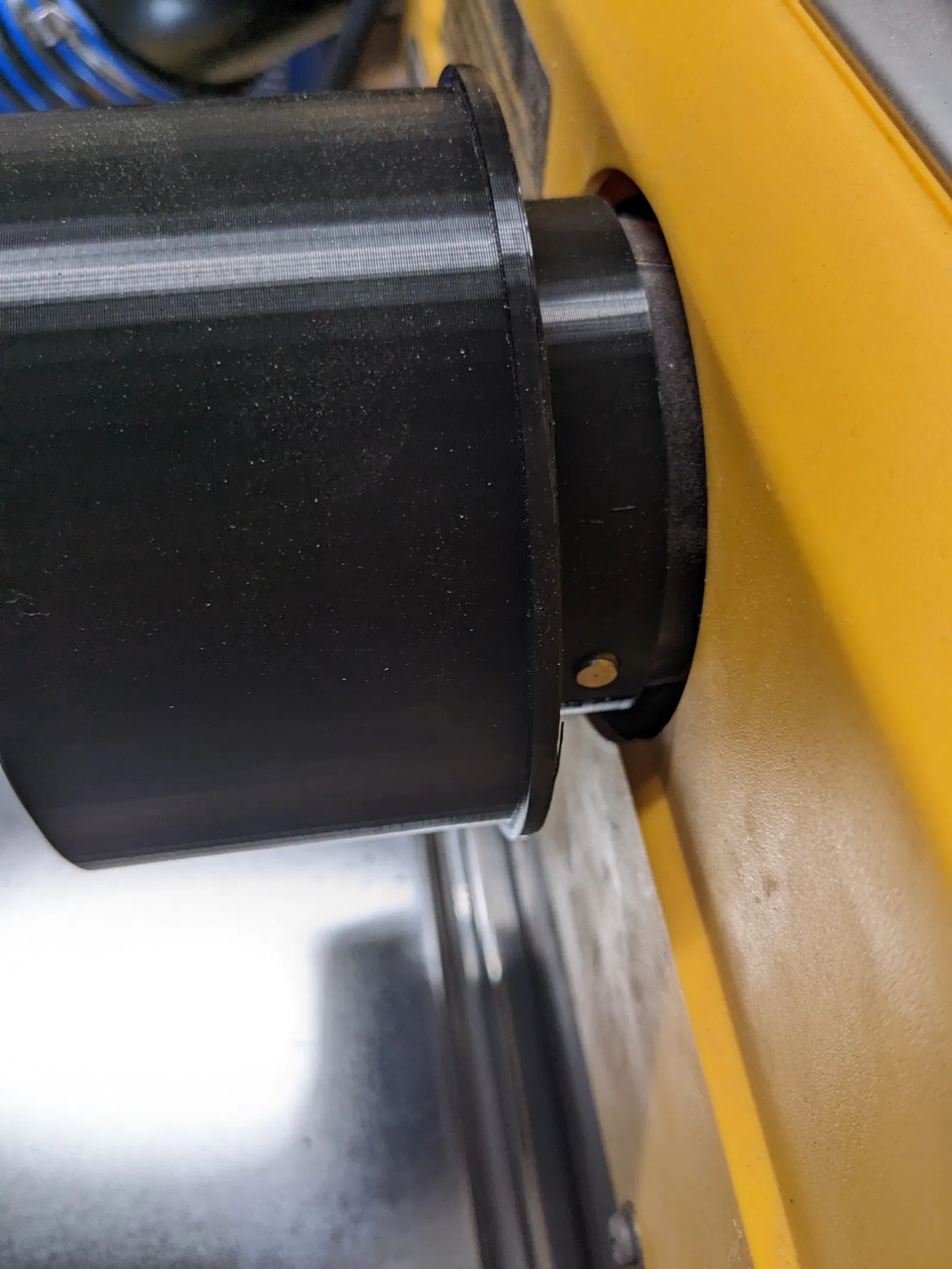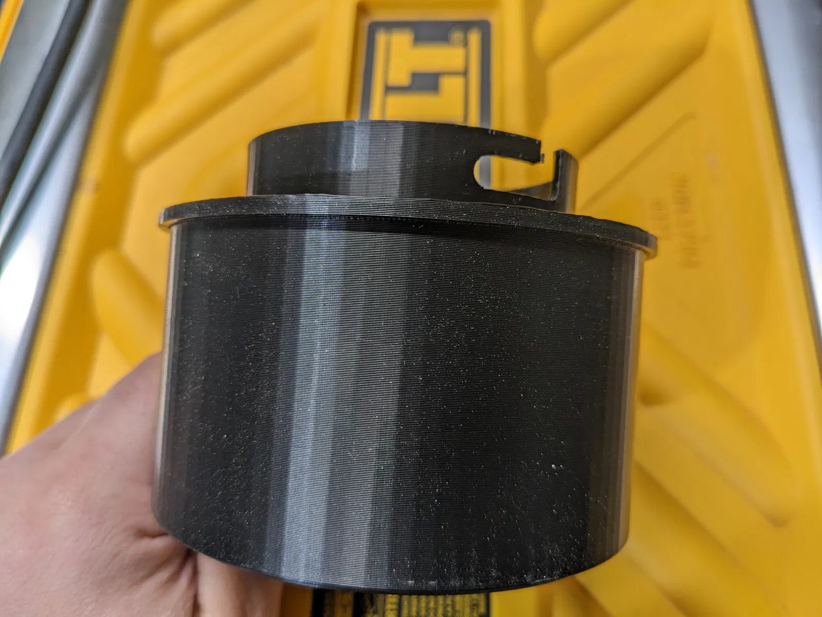 Cái máy DW735 có lực đẩy mạt gỗ mạnh và một số mạt gỗ có thể làm cái bộ chuyển đổi này bị gãy và có khả năng gây hại. Hãy cẩn thận hơn để đảm bảo độ bám dính giữa các lớp, vì bất kỳ điểm yếu nào trên thành cũng có thể gây ra sự tháo rời nhanh chóng sớm hơn dự kiến. Tôi đề nghị dùng độ cao lớp lớn hơn để đảm bảo số lượng lớp được kết hợp giảm đi, điều này sẽ giảm khả năng bám dính kém.