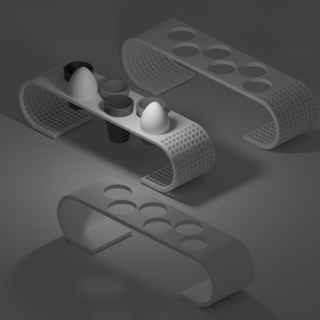 Mẫu này bao gồm hai phiên bản giá đỡ nhà bếp, có thể dùng để đựng trứng nhỏ, muỗng, v.v. Đường kính của khoang là 32 mm.