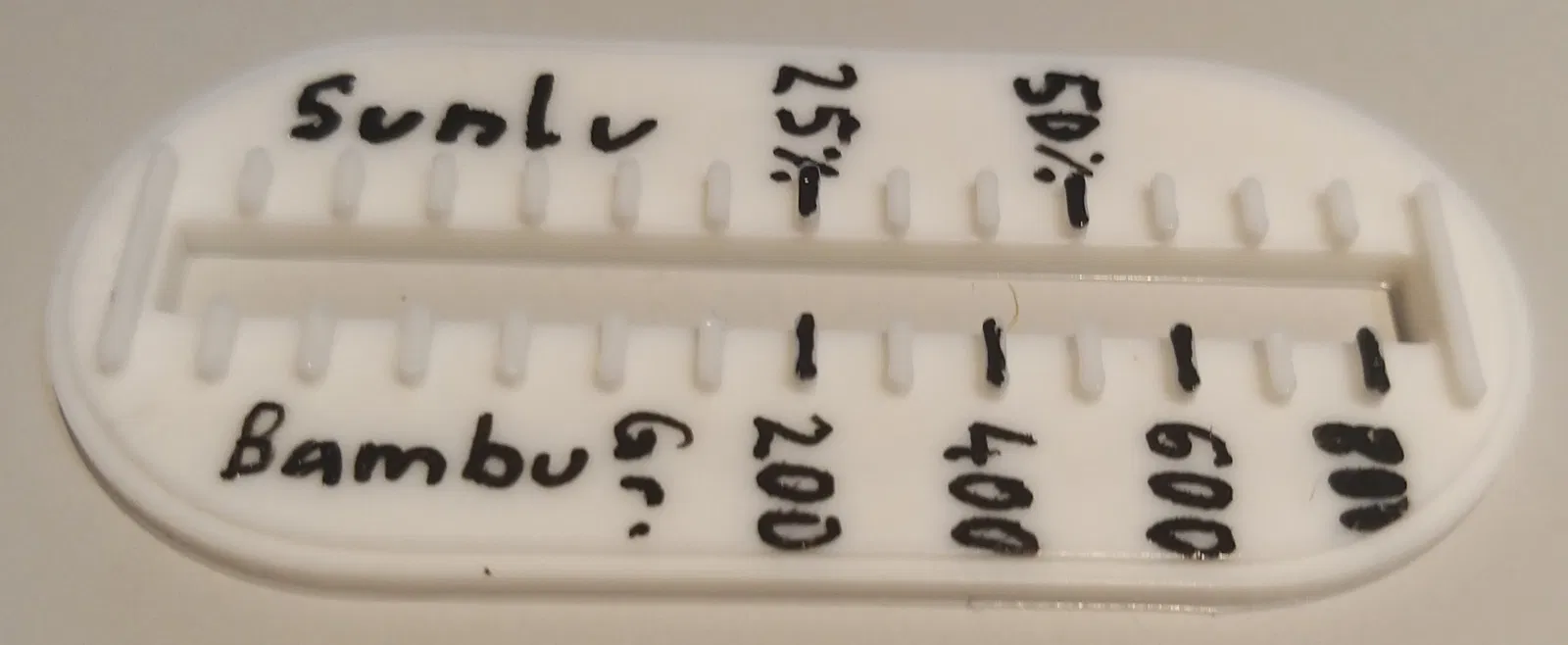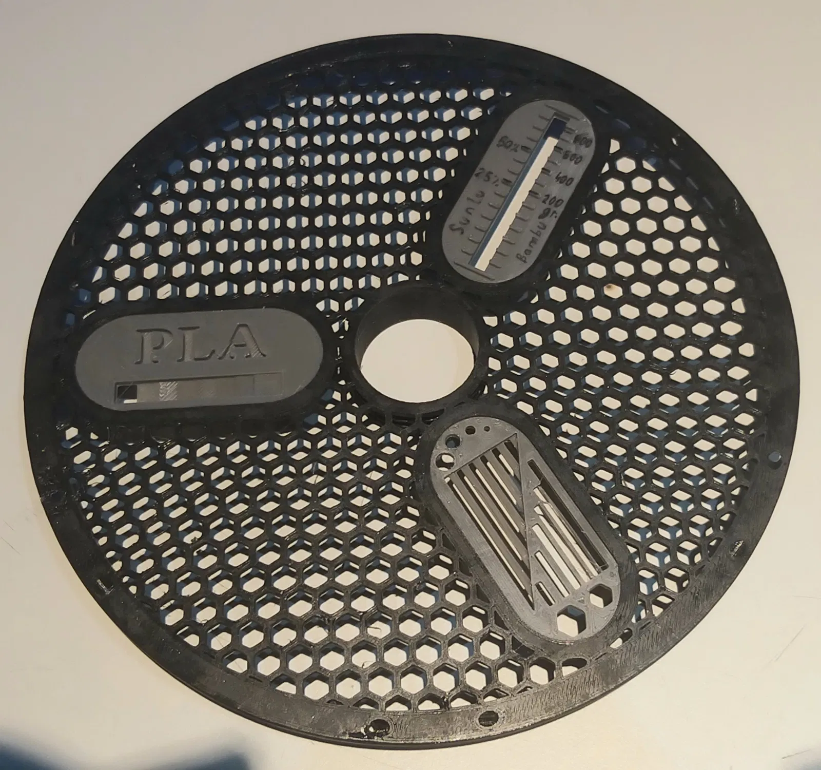 Filamentgauge: Mỗi cuộn dây là khác nhau, vì vậy bạn phải tự tính toán để biết có gì trên cuộn dây. Trong trường hợp Sunlu và Bambulab, tôi đã làm một ví dụ. bạn có thể sử dụng các dấu để đo lường riêng.
