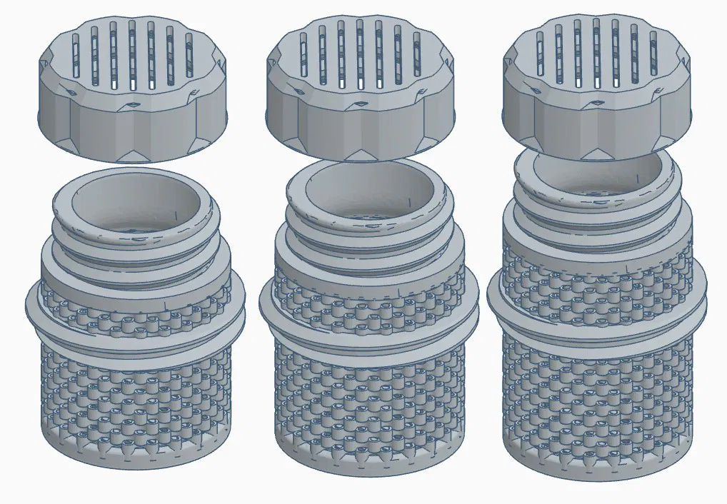 Desicant Bottle: Hộp đựng silica để vặn vào Galaxycore cho lõi 45 - 50 - 55 - 60 mm. bạn cũng có thể đổ đầy bằng các vít nhỏ hoặc các vật dụng tương tự để làm cho các cuộn dây nặng hơn và ngăn chúng bị lật bên trong AMS. Nếu nó trượt quá nhiều bên trong ren, bạn có thể thêm một giọt keo hoặc một mẩu giấy giữa các ren. Chai là bản sửa đổi từ thing:4820432 và đó là một ý tưởng tuyệt vời khi sử dụng các đường lượn sóng thay vì các lỗ.
