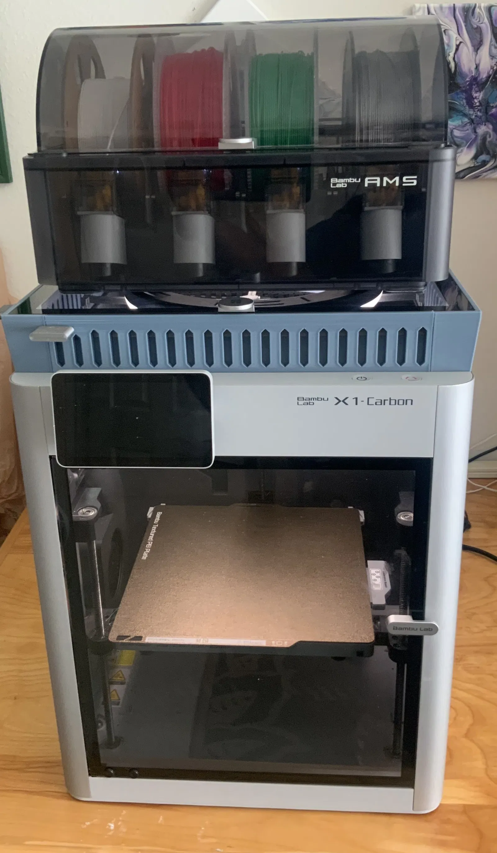 - Thiết kế mỏng. Nó chỉ thêm chưa đến 50mm (2 inch) giữa AMS tiêu chuẩn và X1C tiêu chuẩn. Tại sao lại mỏng? Vì bất cứ thứ gì làm tăng trọng tâm của tháp máy in + AMS có lẽ là một ý tưởng tồi, xét đến độ rung mà chúng tạo ra một cách tự nhiên. Mình chỉ dùng đủ không gian để đặt đèn bên trong, và một chút khoảng trống cho ống PFTE để nó không bao giờ có lý do để tương tác với đèn.