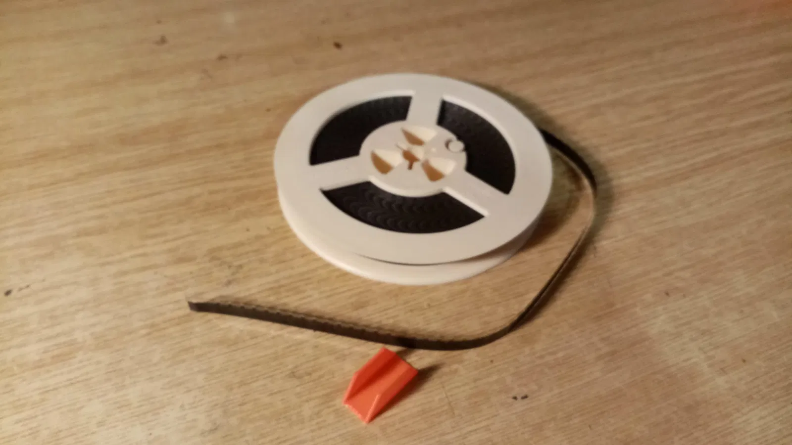 Chiếc kẹp này dùng để giữ đầu của cuộn phim 8mm. Có 2 phiên bản, một phiên bản có thành mỏng hơn để tiết kiệm vật liệu.