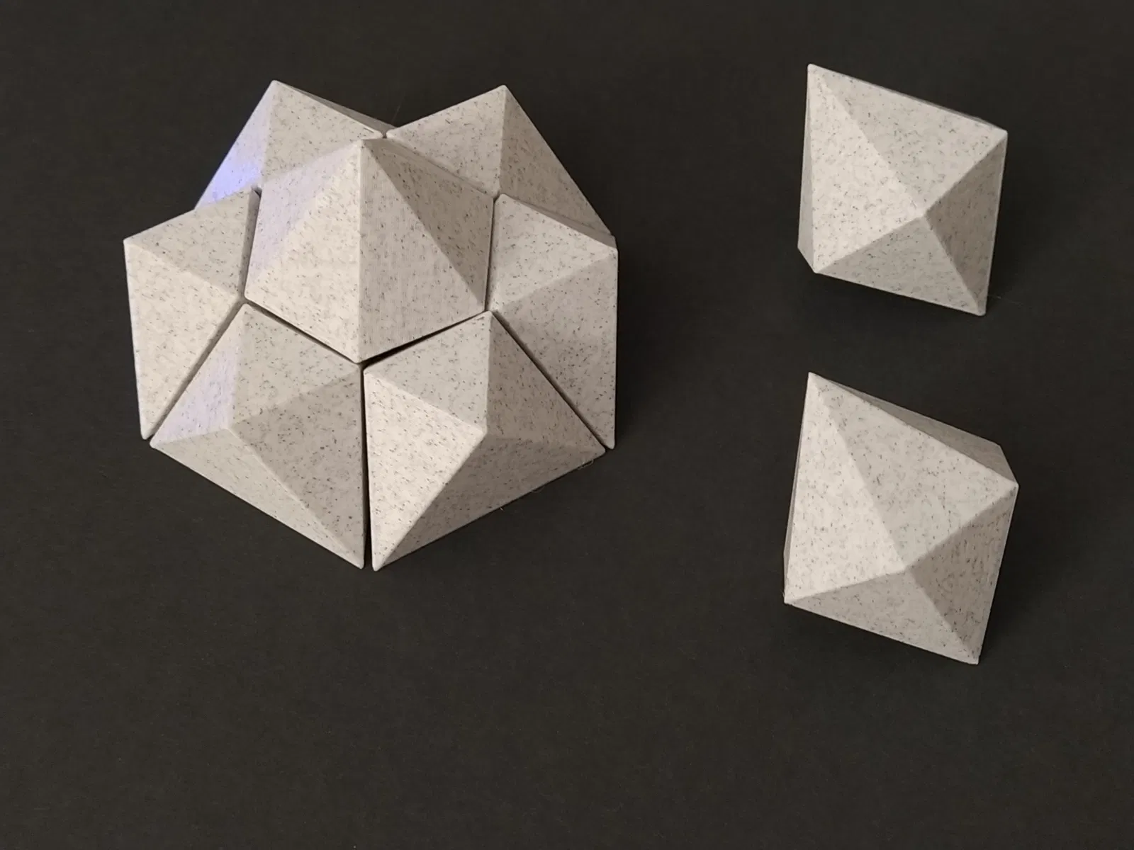 I also provide an easy-to-print puzzle by Hideki Tsuiki called 3H = 6T (all 9 pieces will fit in a 6x6x6 cm box) and the parametric OpenScad script used to generate these models.