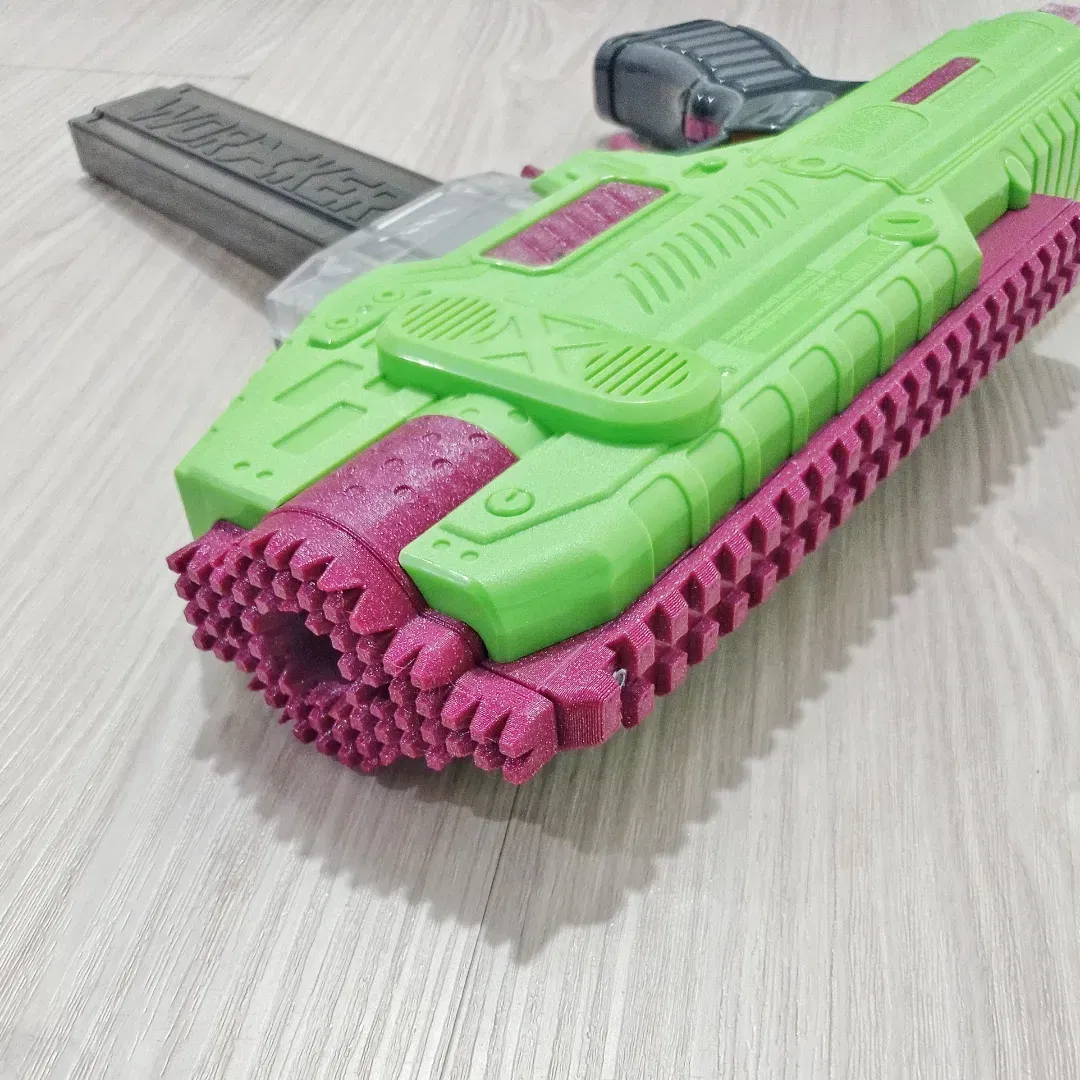 Phần đầu pháo Spectrum Dart Zone / Adventure Force được remixed, có ray và bộ đẩy lai. Yêu cầu 4 ốc vặn chìm nhiệt M3 và ốc M3x10mm để lắp ráp. Bộ đẩy lai tương thích với băng đạn full-length và half-dart.