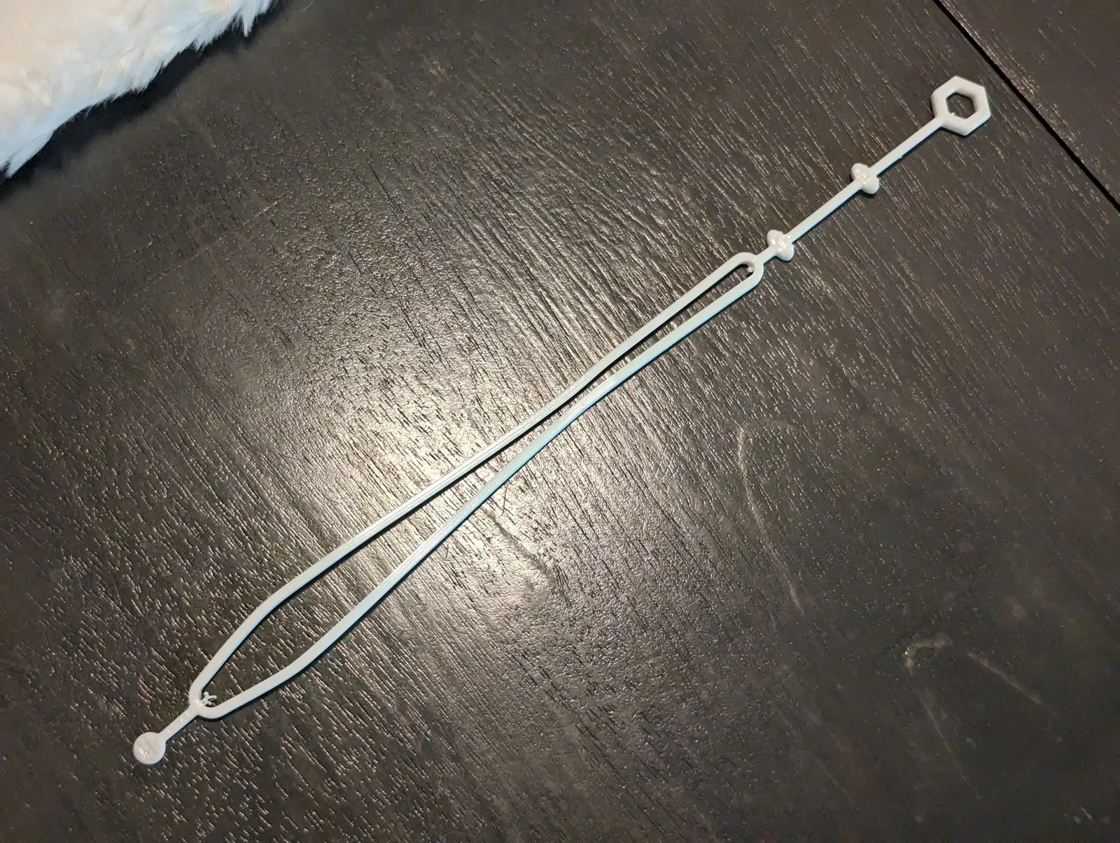 Sợi dây đeo cũ bị đứt! Nên mình đã làm một sợi mới. Đây là sợi dây thay thế cho bộ đồ ăn Uco Ware dùng hàng ngày của mình. Dù cái muỗng-nĩa (spork) chưa ngay giữa lắm, nhưng nó vẫn dùng tốt! Nên in bằng TPU.