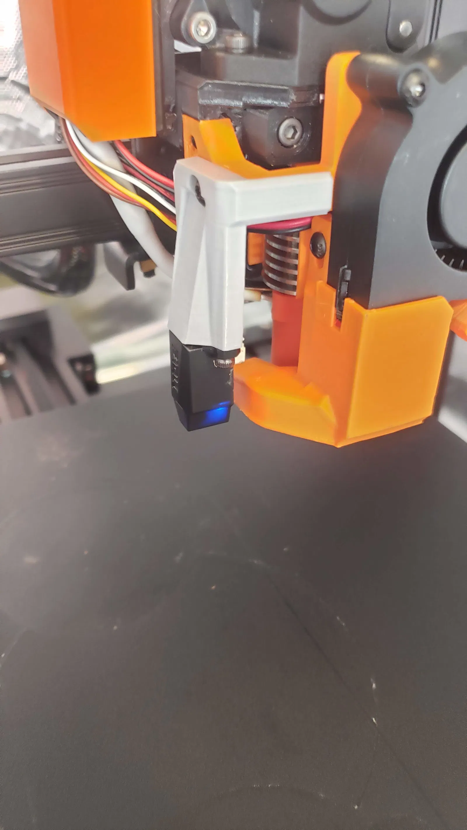 Giá đỡ đầu dò tùy chỉnh cho BIQU MicroProbe trên đầu máy Rogue Orbiter được trang bị vòi phun Volcano.