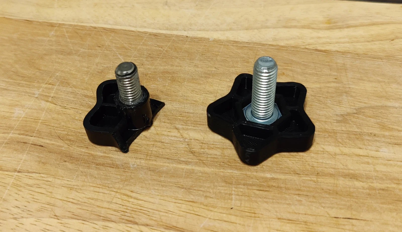 Nó rất sít, nhưng mà với một cái máy in được căn chỉnh tốt và cái búa thì xử lý được hết. Rõ ràng là tui đề nghị in bằng máy FDM, nhưng mà tui đoán là bạn có thể tăng độ hở lên một chút và có lẽ dán con bu lông vào khe bằng thêm chút resin?