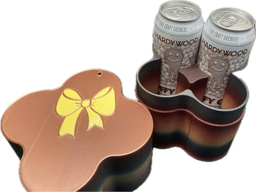 Các xưởng bia thủ công hay bán lon bia 16oz theo lốc 4 lon. Giờ có thể cho lon bia vào đây để làm quà tặng thiệt là xinh xắn! Hộp có thể in đa sắc hoặc in riêng nơ gắn vào, có lỗ treo tag hoặc móc khóa.