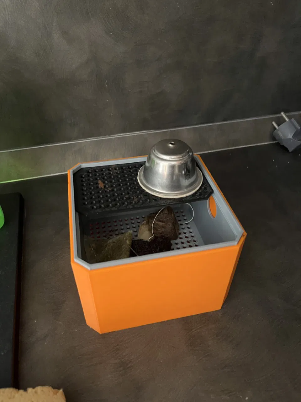 Giữ cho viên nang cà phê nghỉ ngơi và nguội bớt trước khi lấy cà phê ra, để có thể sử dụng lại chúng. Thiết kế này giúp làm nguội và thoát nước, ngăn ngừa nấm mốc. Lưu ý về nhiệt độ khi sử dụng PLA, nên cân nhắc PETG hoặc làm dày hơn.