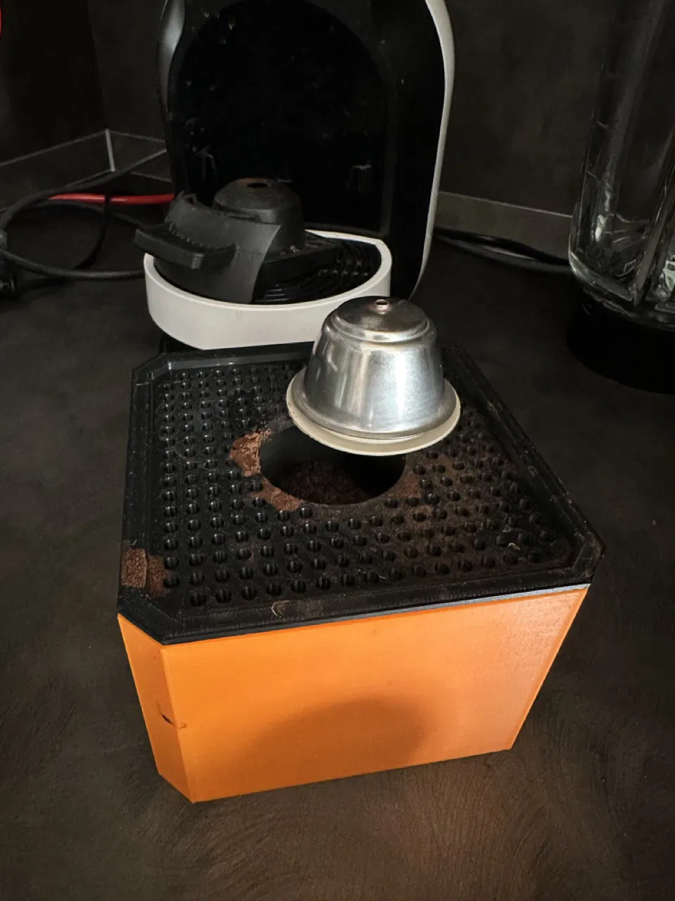Tôi có máy pha cà phê Dolce Gusto và tôi sử dụng nó với bộ viên nang thép không gỉ có thể tái sử dụng. Những viên nang này cần một chỗ để nghỉ ngơi, làm nguội và đổ hết nước bị kẹt bên trong.