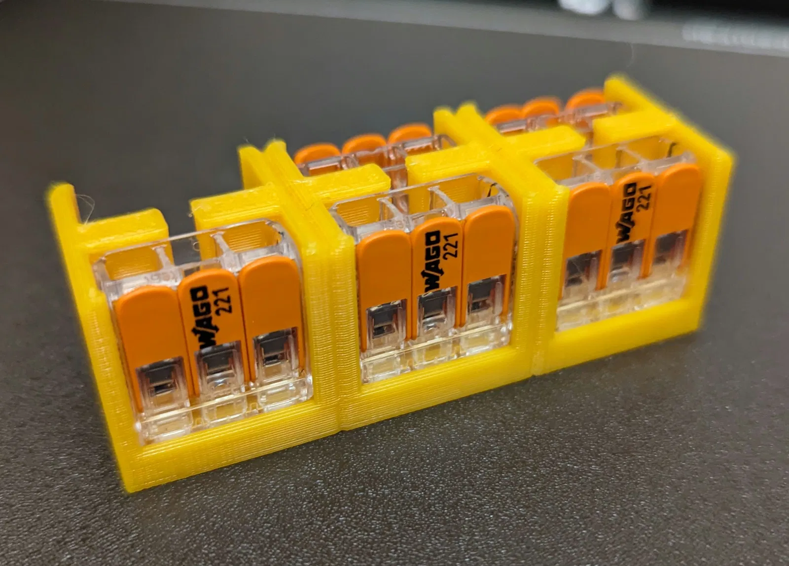 Cần đế đựng Wago 221-413? Mẫu này được chỉnh sửa từ đế gốc để chứa được 6 cái Wago 221-413, phù hợp nhu cầu của bạn.