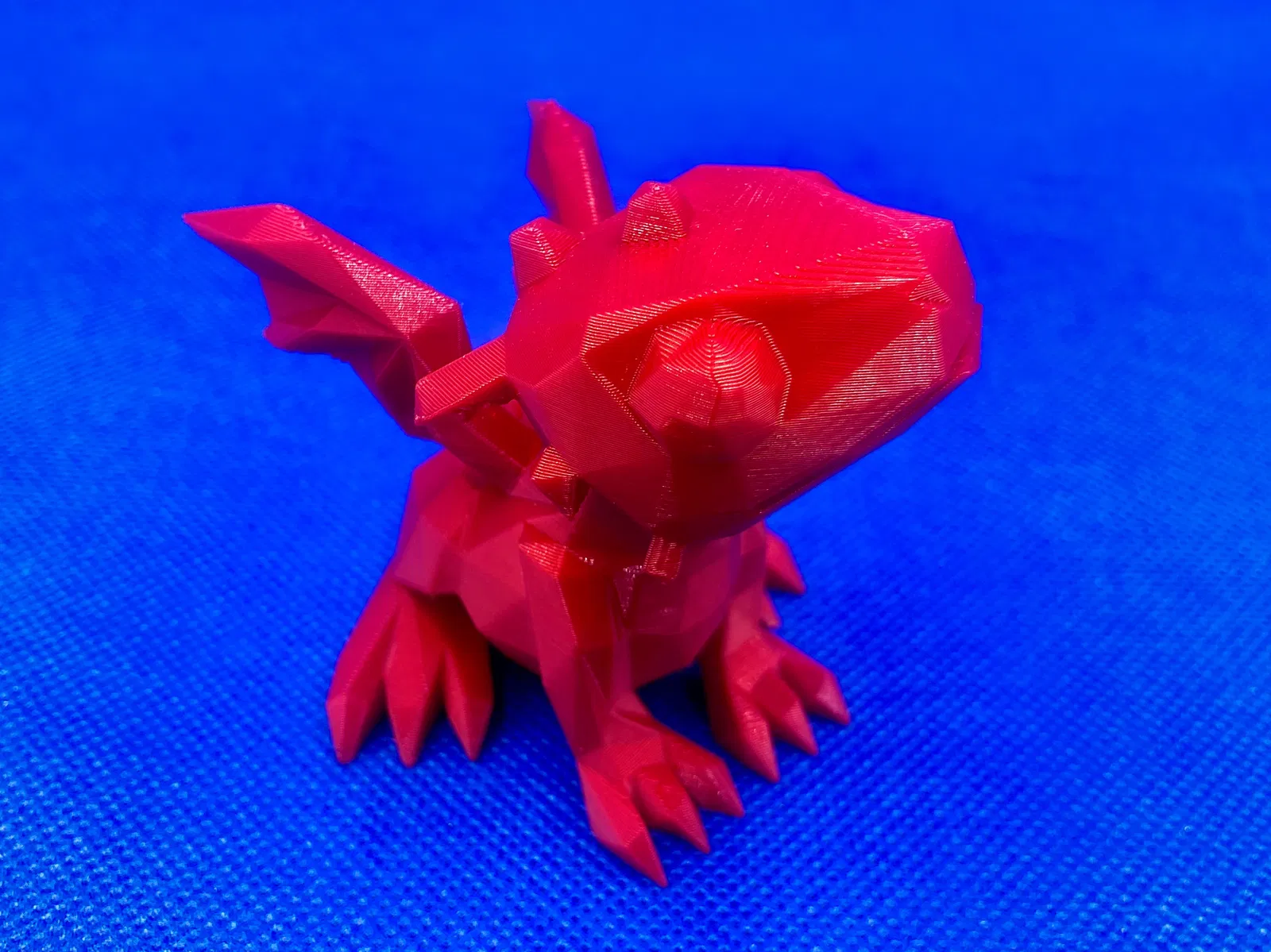 Mô hình Rồng Dễ Thương phiên bản Low Poly, có các cài đặt in được khuyến nghị bao gồm chiều cao lớp 0.2 mm, ruột 5% gyroid, 3 chu vi và hỗ trợ organic. Mô hình này cần hỗ trợ đặt trên mặt bàn in.