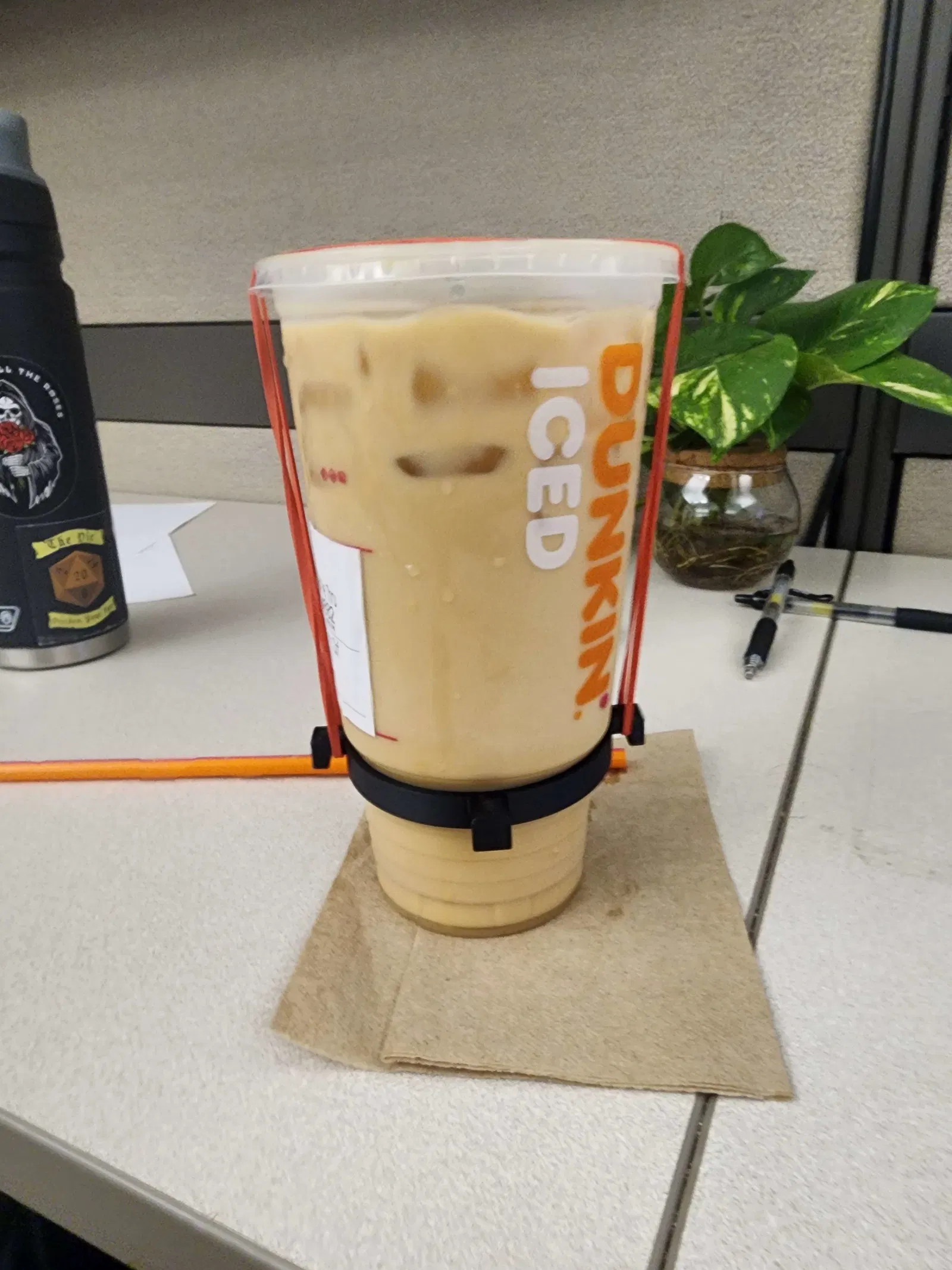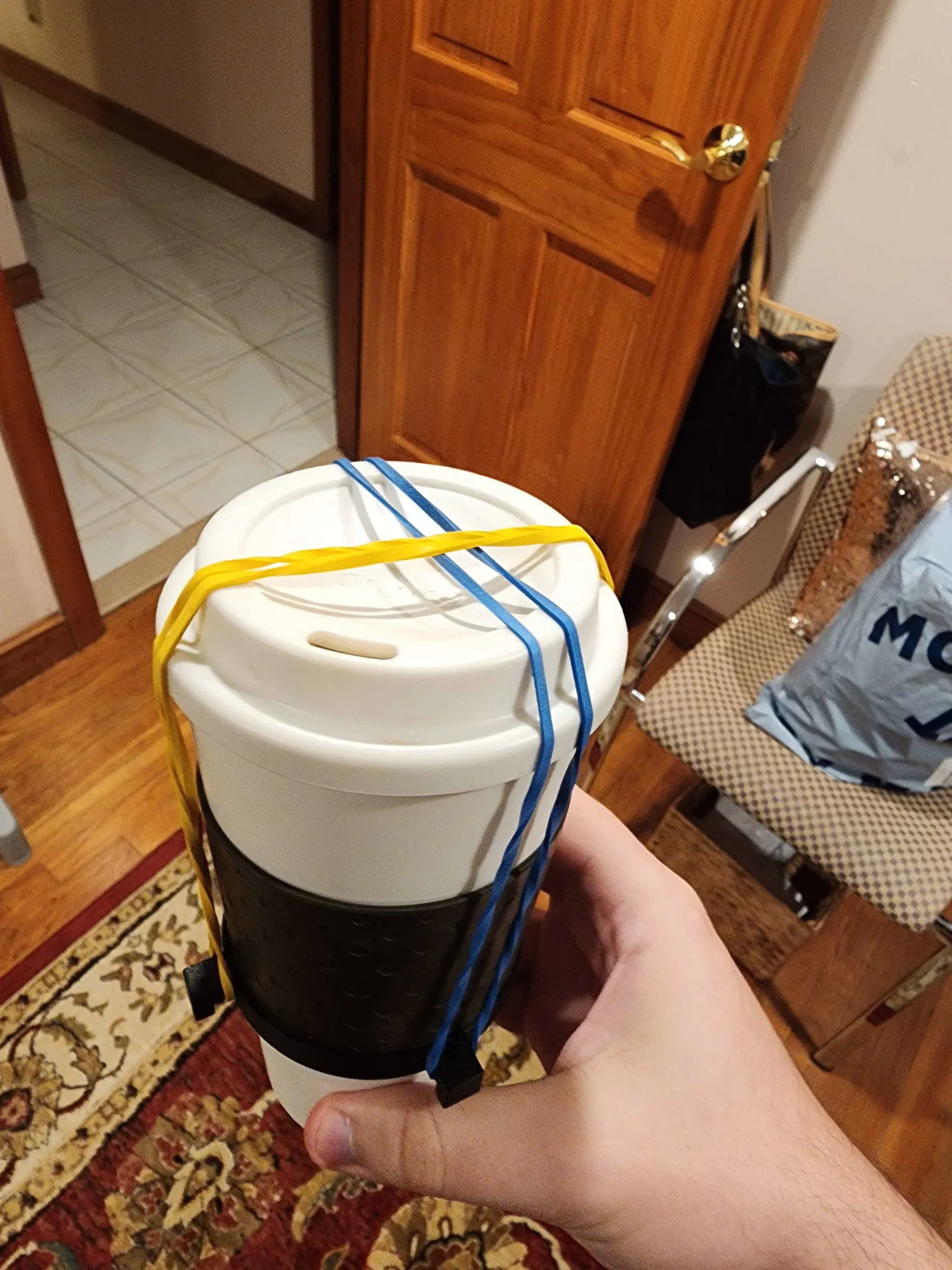 Tôi đã dùng dây thun để cố định nắp.