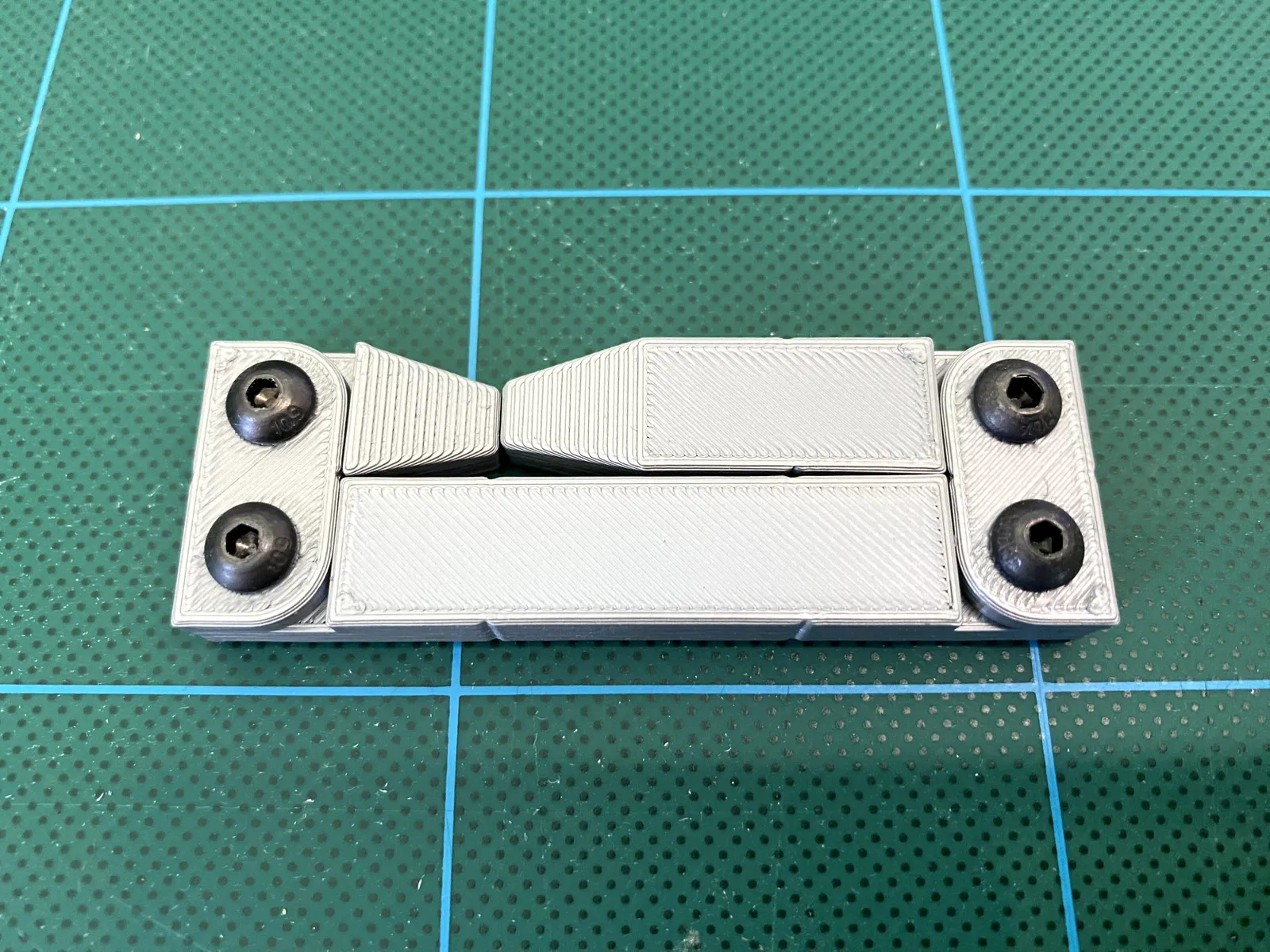 Cần ốc M4 cỡ 8mm và đai ốc tương ứng để lắp ráp (4 con cho thước 6 inch, 8 con cho thước 12 inch). Các lỗ ốc được thiết kế để có thể in mà không cần hỗ trợ. Chỉ cần đẩy ốc xuyên qua lớp 0.2mm đang bịt lỗ.