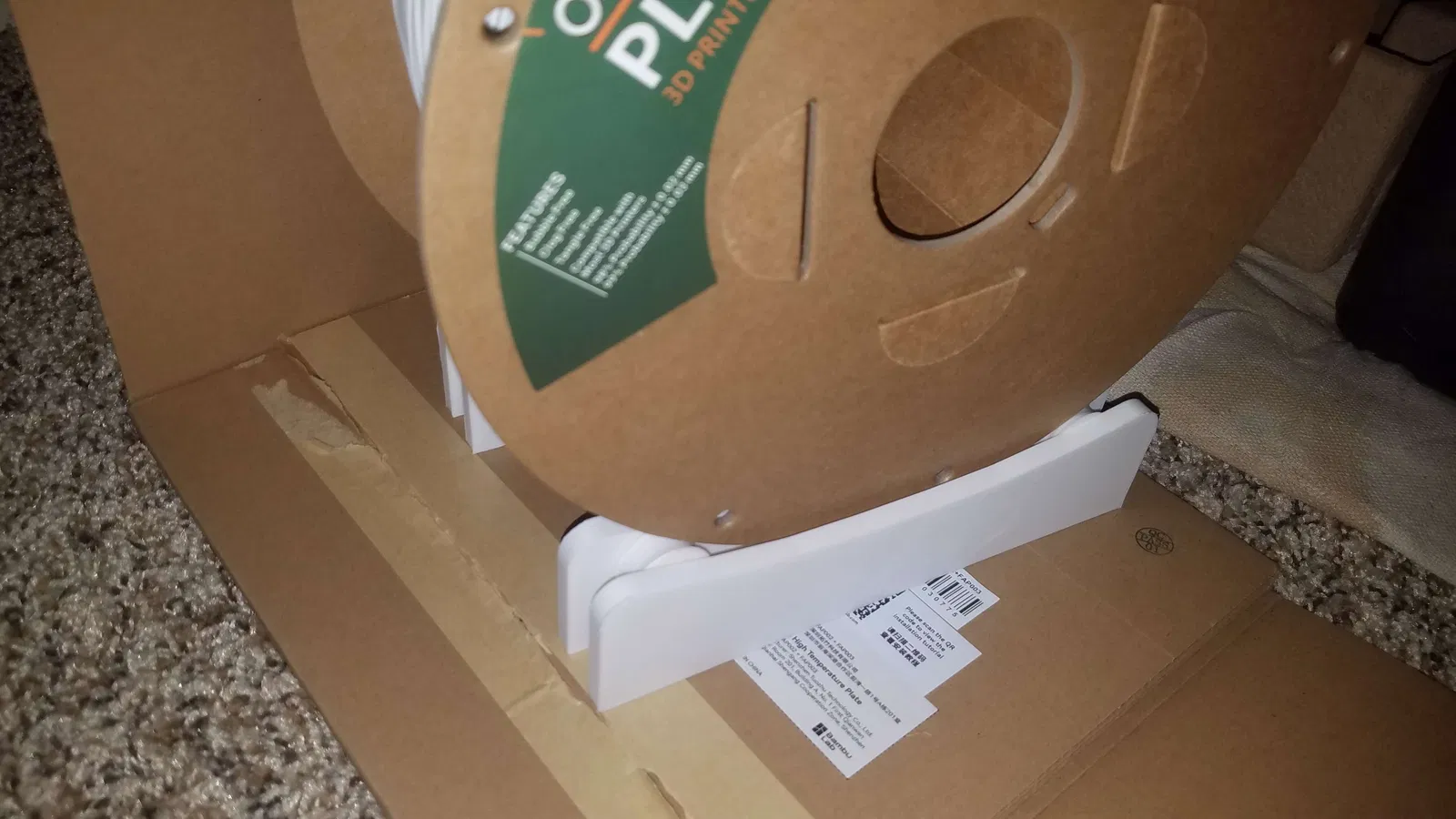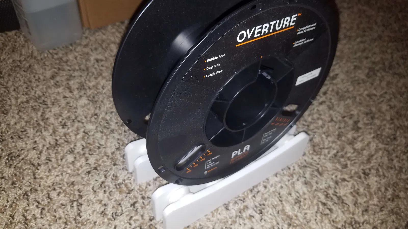 Mình thử cái thiết kế cánh tay đòn (cantilever arm) cho cái spool 3 kg (đường kính ~250 mm). Chắc mình xài infill hơi ít, nó bắt đầu bị oằn xuống rồi. Cuối cùng mình quyết định làm lại cái thiết kế con lăn cơ bản vì nó in nhanh hơn. Nhưng cái này có tới bốn cái con lăn cho chắc ăn. Mấy cái bánh xe bên trong cũng đựng vừa spool 1 kg (đường kính ~203 mm) ngon lành.
