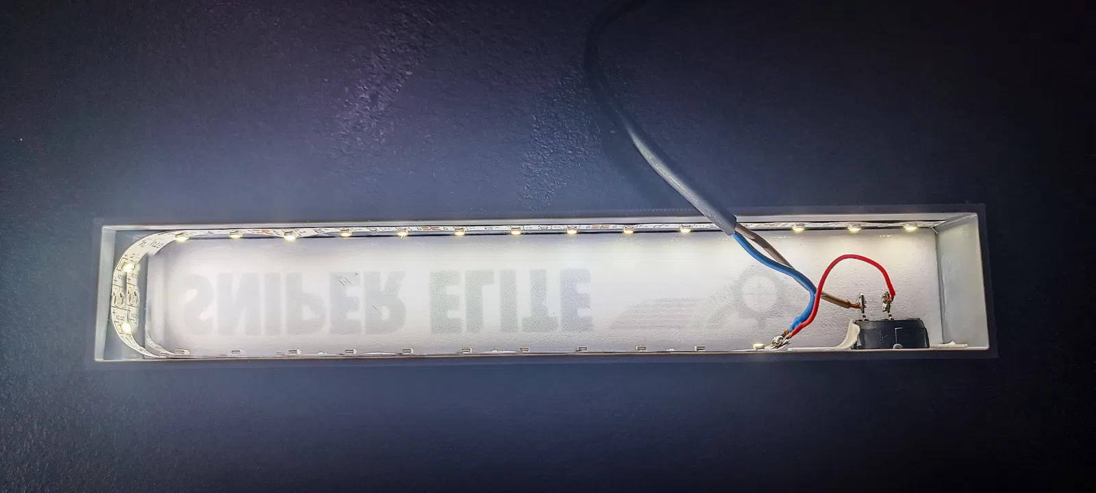 Mô hình logo Sniper Elite phát sáng, được chế tạo bằng LED strip và công tắc tròn tiêu chuẩn. Thích hợp cho việc làm đèn trang trí hoặc quà tặng cho fan hâm mộ.