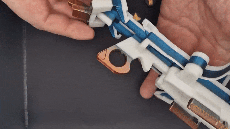 MẸO: Nạp và xả lực căng của cánh tay vài lần để chúng mềm mại và dễ hoạt động hơn. Có thể làm mịn đường đạn bằng tính năng Ironing của slicer ở lớp trên cùng hoặc dùng dũa sau đó. Một ít bơ bôi vào "cánh tay" tạo lực căng sẽ giúp thêm phần trơn tru.
