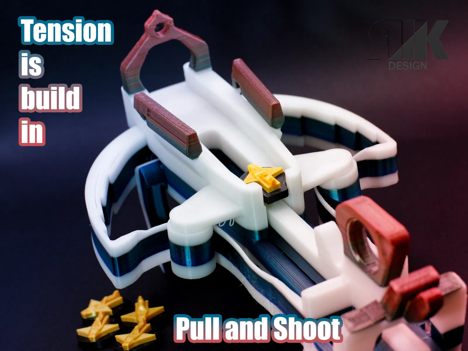 Máy bay nỏ bắn được, in ra là chơi được ngay. Máy bay con làm đạn, có sẵn độ căng, chỉ cần nạp đạn và bắn. Bắn xa 8-10m tùy vật liệu. Thiết kế vui nhộn, phù hợp A1 mini/Prusa mini.