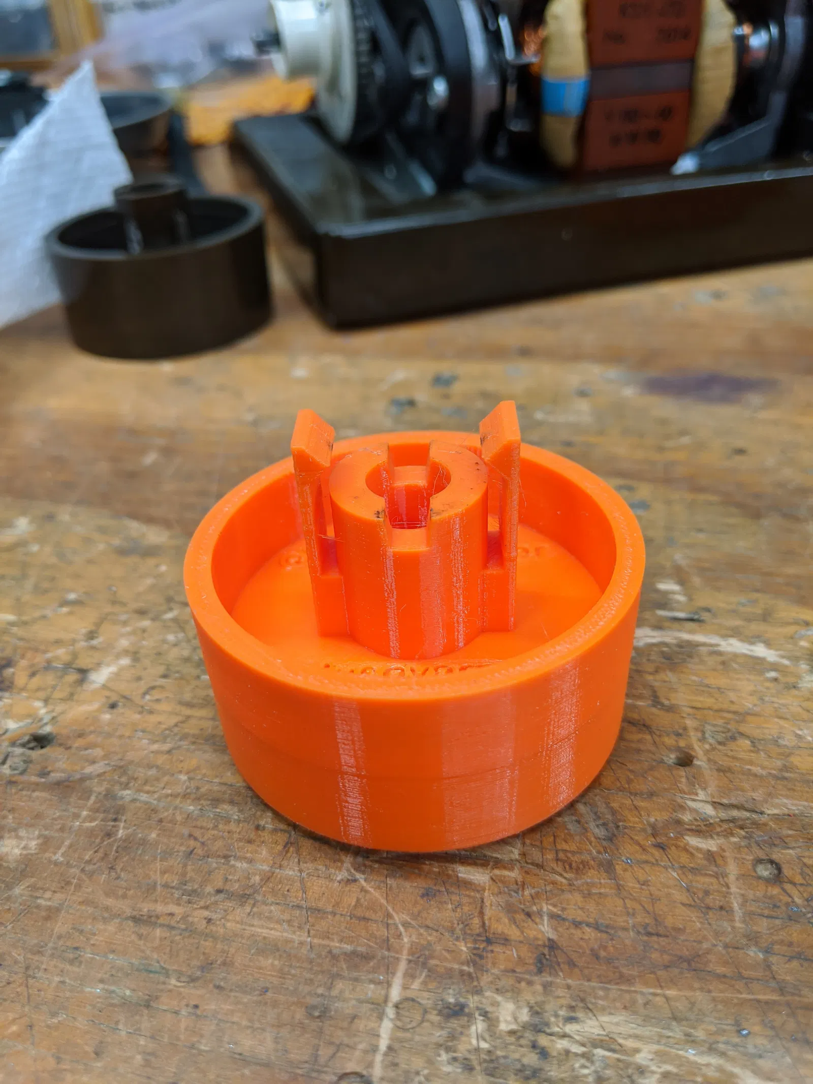Bánh xe tay thay thế cho máy Husqvarna dòng 6000. Cái này được làm dựa trên cái bánh xe bị gãy của con 6440 nhà tui, giờ kiếm đâu ra nữa. Thông thường sẽ có 2 cái kẹp kim loại (hình chỉ có 1 cái vì cái kia tui làm mất rồi) để giữ bánh xe trên trục. Lúc in thì nhớ in cho cái trục hướng lên nha. Phần bán kính ngoài nó sẽ hơi sần sùi tí nhưng mà sửa lại dễ lắm. Lắp lên máy rồi lấy giấy nhám mịn chà chà cái phần bán kính đó trong lúc cho máy chạy. Lưu ý là hình chụp cái núm gắn trên máy đã tháo rời. Không cần phải mở bất kỳ nắp nào để lắp đâu. Cứ nhẹ nhàng đẩy cái núm vô thôi là được. Mấy lần in đầu mấy cái "tay" để kẹp vô rãnh nó dày quá, lắp vô là nó gãy liền. Tui nghĩ phiên bản này thì nó cân bằng được rồi, đủ mỏng để không gãy mà cũng đủ dày để giữ cái núm bám vô mấy cái lẫy bên trong. Nếu mà mấy cái kẹp bị gãy lúc lắp thì hú tui nha, tui làm cho nó mỏng thêm trong model. Tui dùng PETG thay cho PLA vì nó bền hơn với tia UV và nó dẻo hơn PLA một chút. Mấy cái kẹp giữ cái núm nó cần phải uốn cong để trượt qua cái chỗ vát lên rồi vô rãnh giữ. Phiên bản đầu bị gãy lúc lắp. File thiết kế FreeCad gốc có đính kèm luôn, phòng khi cần chỉnh sửa gì đó.