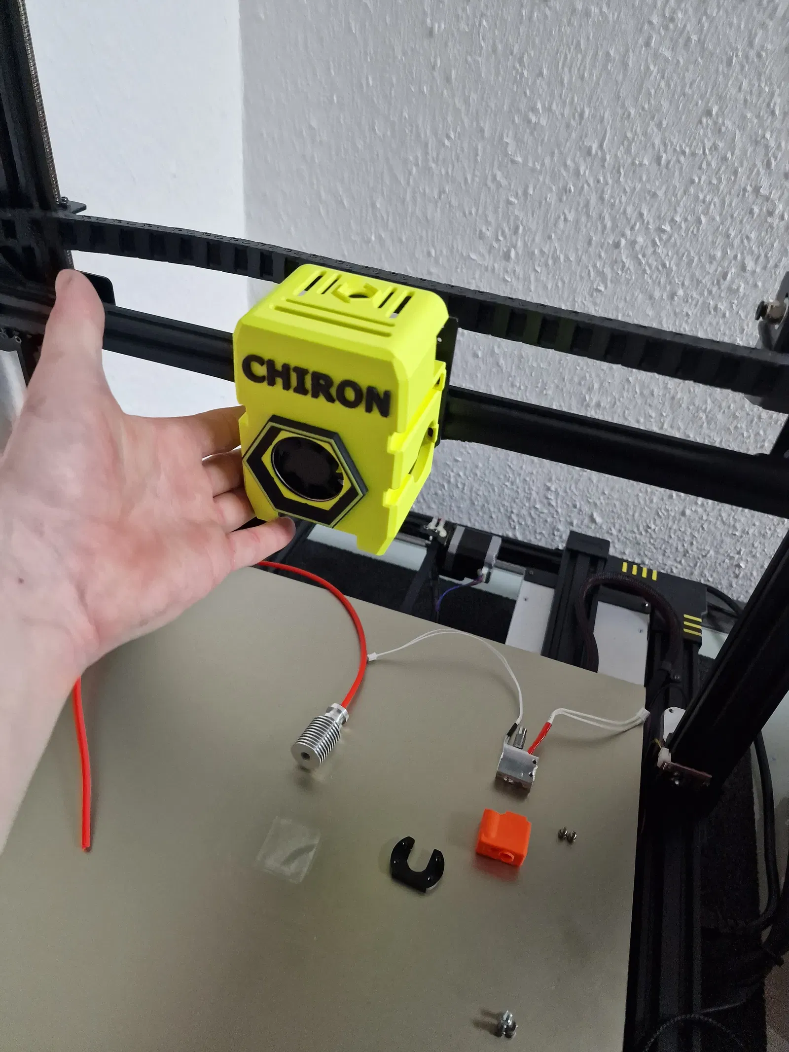 À, cái housing này đã chạy thử với mọi thứ bên trong khoảng 10 tiếng rồi, lý do duy nhất mà trong hình thấy tháo cái đầu nóng ra là do tui đổi từ đầu phun 0.6mm sang 0.8mm thôi. Sẽ có hình chụp lúc lắp ráp hoàn chỉnh sau nha.