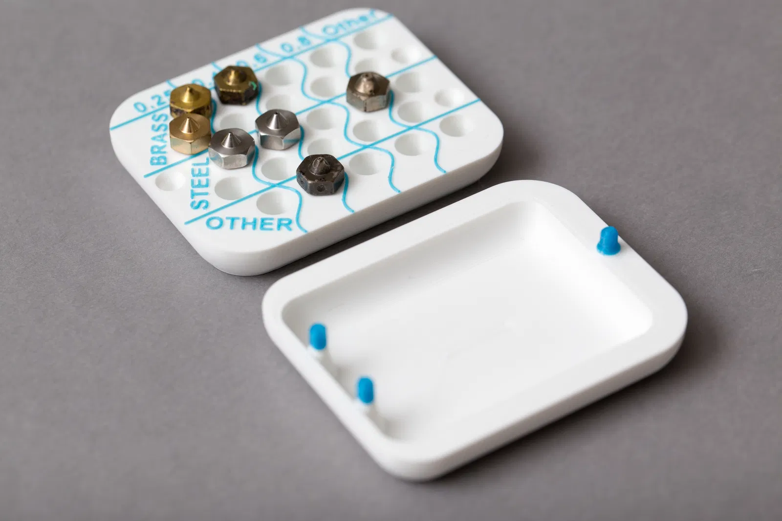Hộp đựng đầu phun V6 cho tối đa 25 cái, là giải pháp lưu trữ tuyệt vời cho anh em dùng nhiều máy in. Có vạch đánh dấu, nắp cao không chạm đầu phun, phù hợp nhiều loại vật liệu và kích cỡ đầu phun khác nhau.