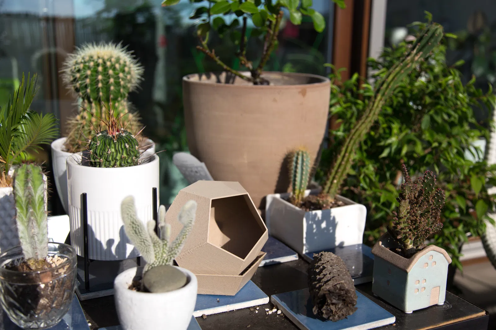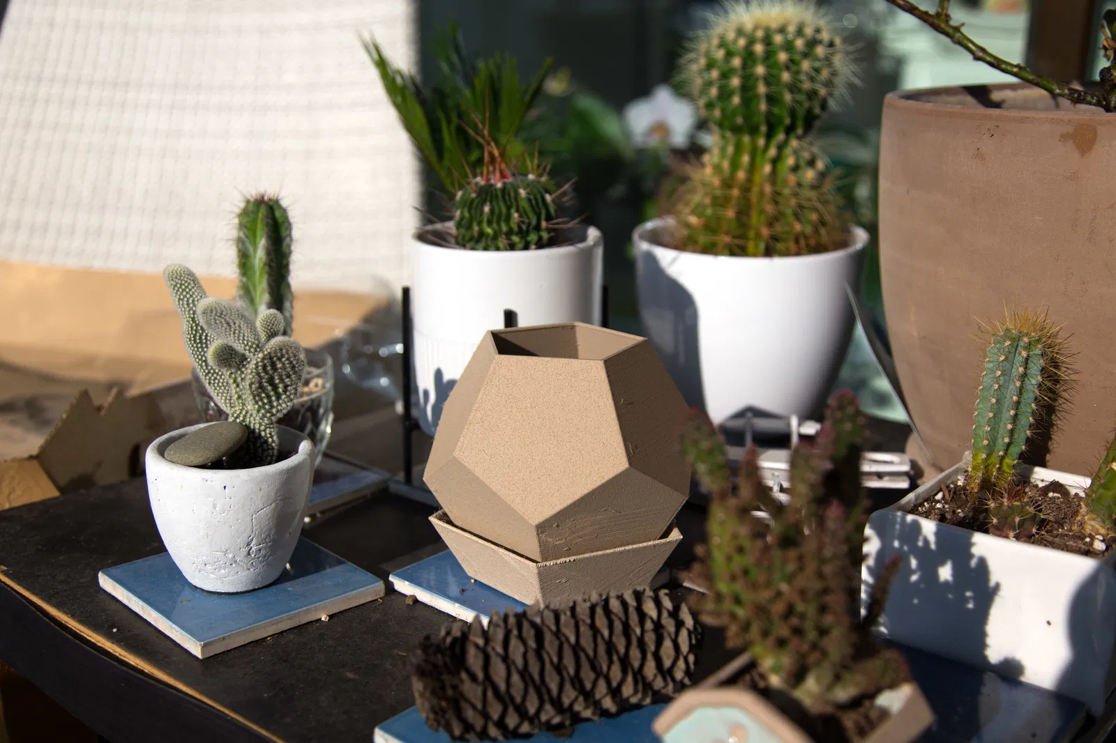 Chậu hoa hình khối 12 mặt (Dodecahedron) được hoàn thiện với đĩa hứng, hình ngũ giác. Nâng cao khỏi đĩa hứng. Có lỗ thoát nước và đĩa hứng chống rung lắc. Có thể in 3D ở mọi kích thước, dễ dàng vệ sinh và tăng độ bền.