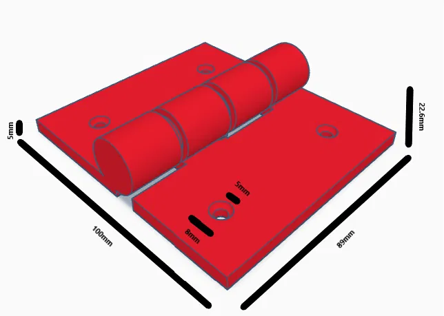 Đây là một cái bản lề đơn giản để in. Thông số kỹ thuật có thể suy ra từ ảnh. Nên in với độ chính xác lớp tối đa và tốc độ khá chậm.