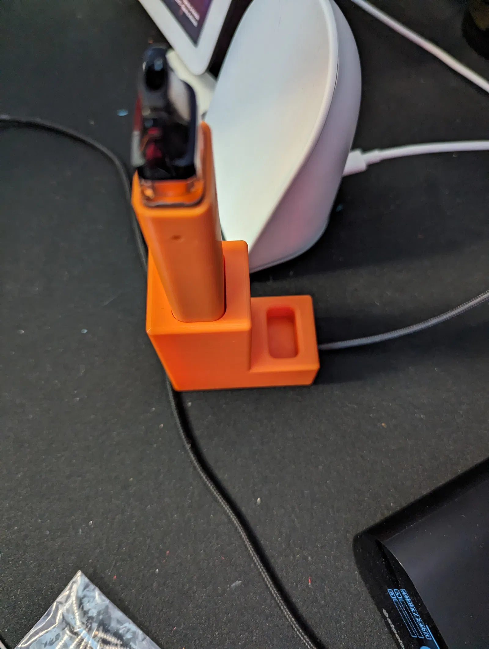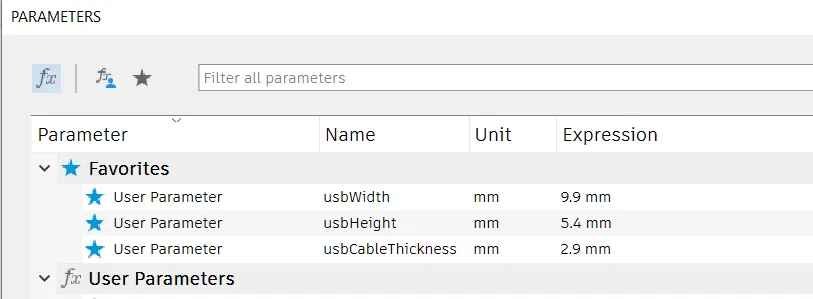 Hiện tại mẫu này được canh theo cáp USB đi kèm Xros, nhưng mà có tham số cho người dùng để chỉnh lại kích thước lỗ cho bất kỳ loại cáp USB nào nha. Chỉ cần cập nhật lại kích thước cho đầu nối và cáp thôi. Độ sâu của rãnh thì bị giới hạn bởi kích thước cáp và sẽ tự động điều chỉnh theo tham số độ dày cáp.