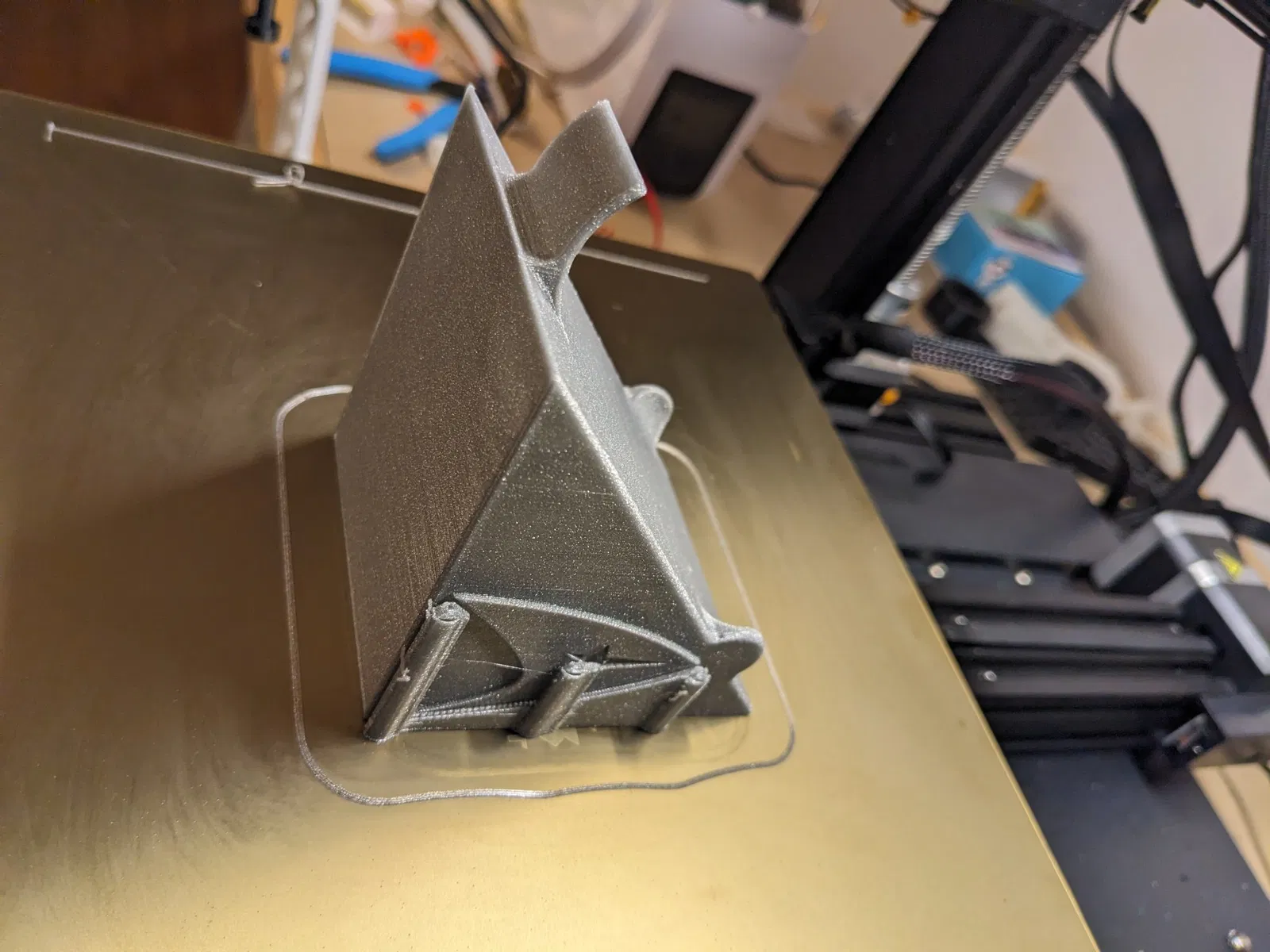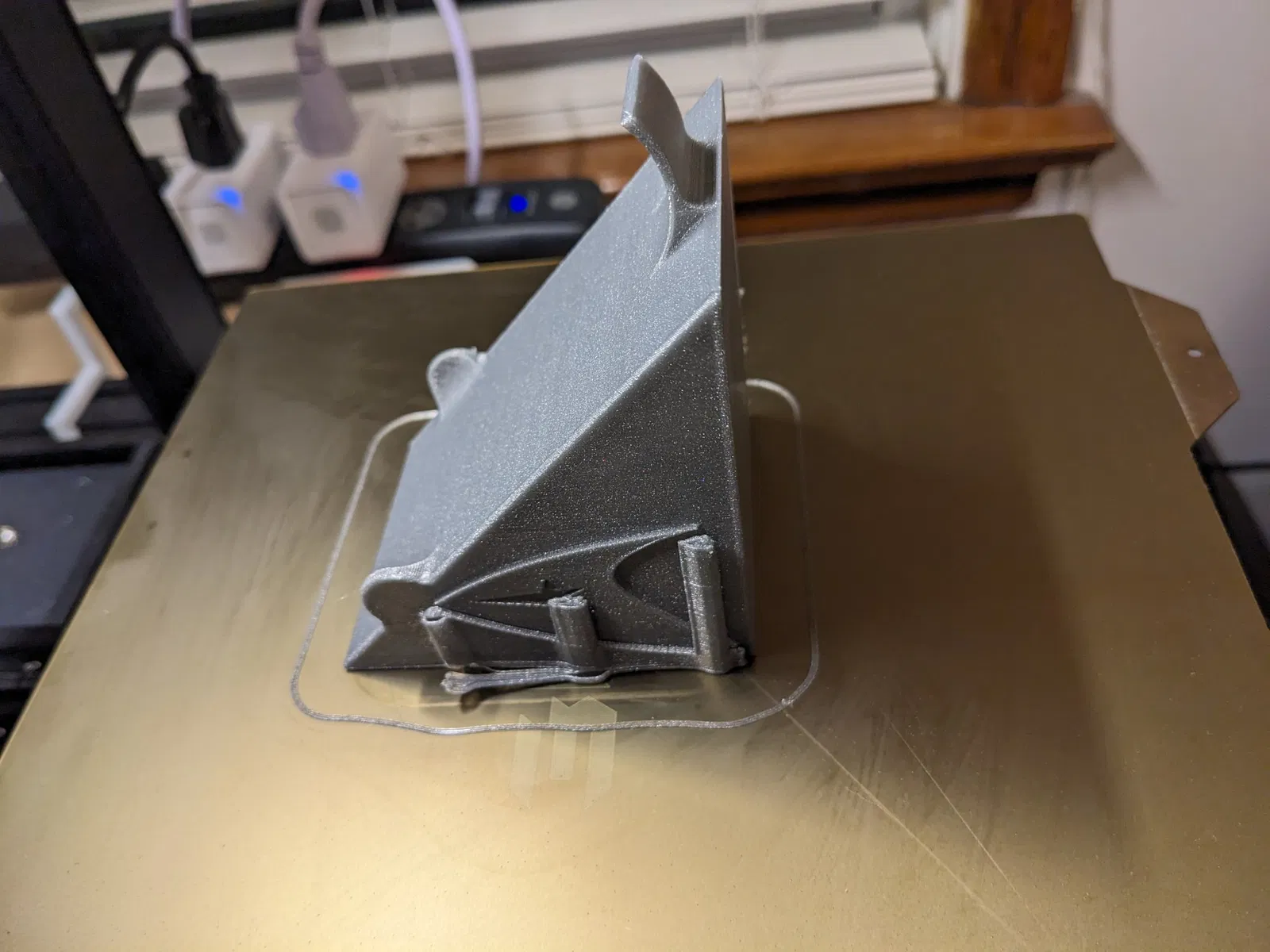 Tôi đã in cái này bằng Stronghero3D Galaxy Silver PLA, một loại nhựa trong suốt màu xám với ánh kim. Đây là loại filament rất tốt, nó luôn in đẹp và thực sự tỏa sáng dưới ánh sáng. Nó mang lại vẻ ngoài giống như đồ prop của những năm 60.