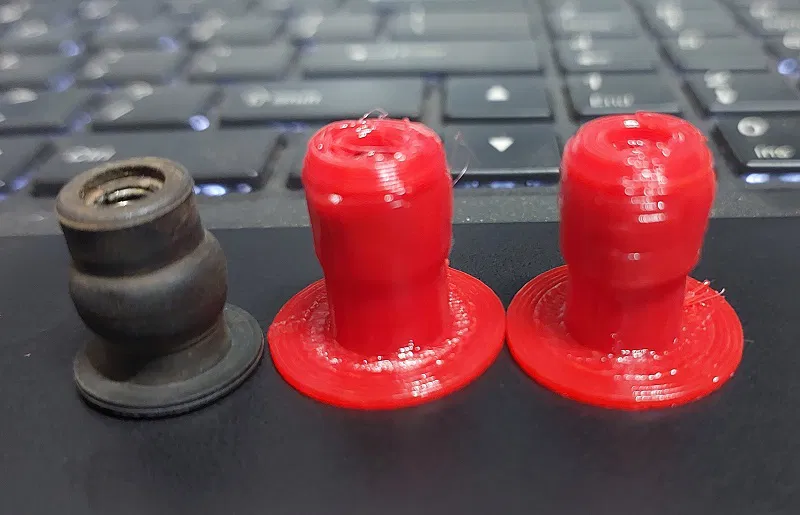 Món đồ 3D này là chốt cao su (gromets) dành cho kính chắn gió xe Suzuki V-Strom DL 650 đời 2015. Người đăng không chắc gọi nó là gì, nhưng nó được in bằng TPU và có khoang để nhét ốc M5. Tuy không đẹp nhưng hoạt động tốt.