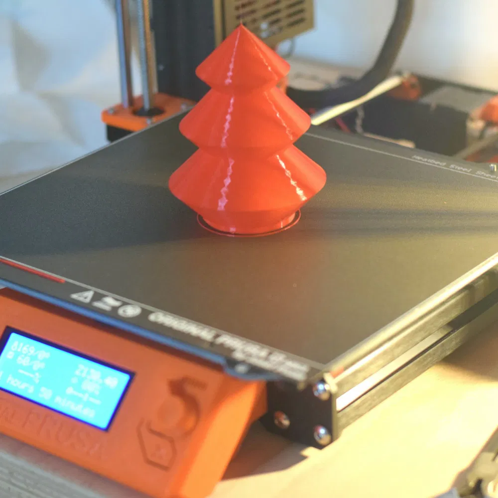 Mô hình cây thông Noel tối giản, in bằng Freecad, không cần hỗ trợ. In ở chế độ vase mode cho nhẹ, có thể dùng làm đồ trang trí cây thông. Bản in 100% vase mode nặng ~8g, thử nghiệm với PLA.