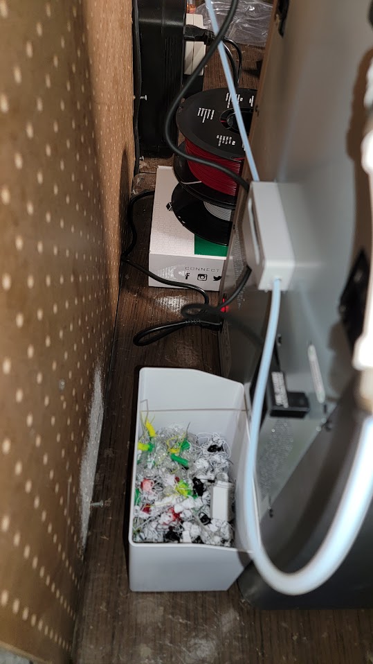 Ống hứng nhựa thừa Bambu Lab X1C có đế gắn nam châm nam châm neodymium Harbor Freight. In xong trong khoảng 1.5 tiếng ở chế độ Extra Draft, ống hứng này khá chắc chắn, dung tích ổn và tiết kiệm không gian.