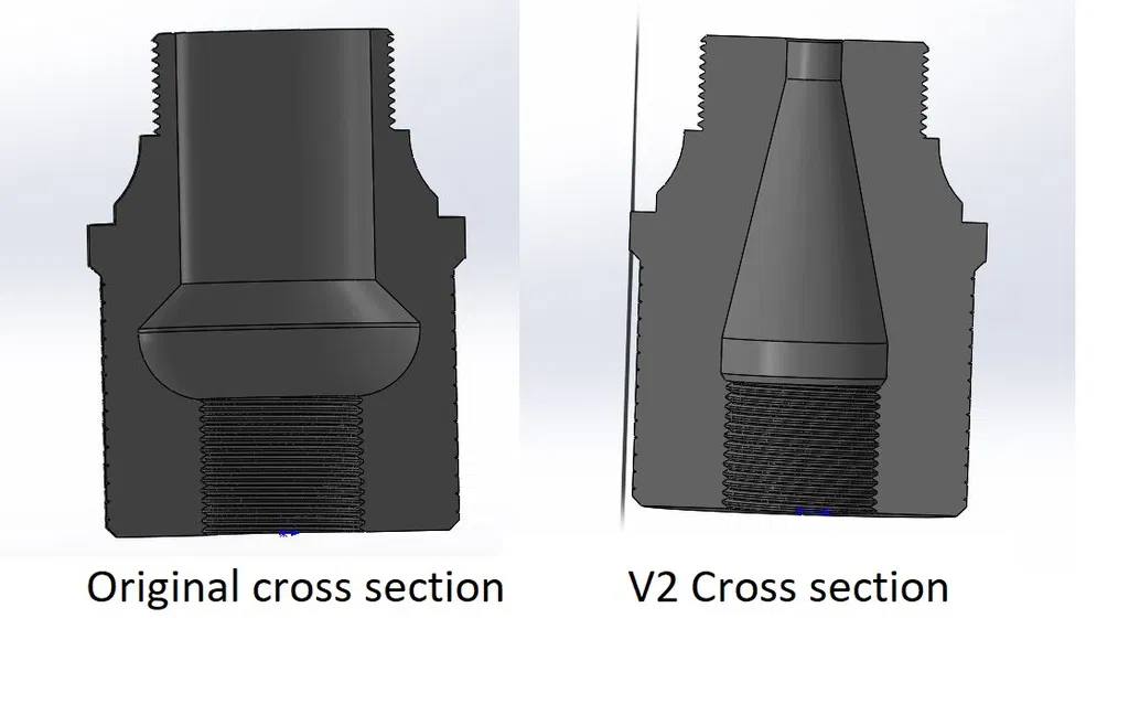 [cập nhật 16.5.2021] Ra mắt phiên bản V2 cho phần đế, nó có thành dày hơn và ở phía trước có lỗ 8.6mm, phòng khi bạn cần ổn định nòng súng bên trong. Ở V2, ren 14mm được tạo bằng phần mềm khác, nó hơi khít hơn. Ren 24mm thì giống bản gốc nha.