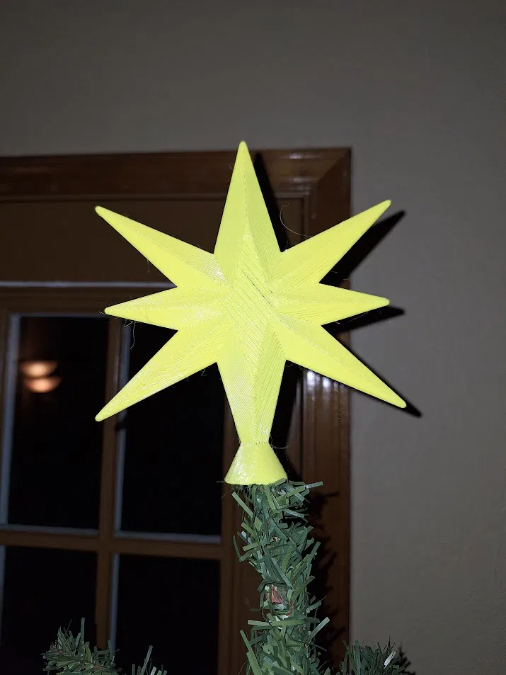 Ngôi sao Giáng Sinh (Sao Bethlehem) phiên bản đỉnh cây thông. Một vật trang trí độc đáo cho mùa lễ hội, dễ dàng in ấn với các cài đặt cơ bản, mang không khí Giáng Sinh ấm áp đến ngôi nhà của bạn.