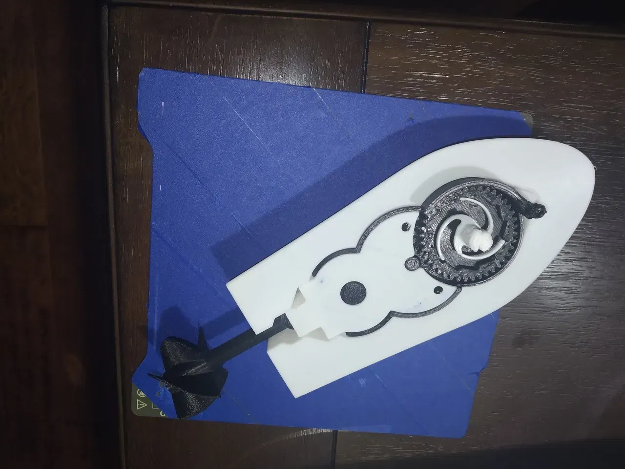 Bộ hộp số, trục và chân vịt được thiết kế để in theo cách truyền thống (không phải vase mode). Khác với trục của Mike gốc, trục này được thiết kế để in nằm nghiêng. Nó sẽ chắc chắn hơn ở hướng đó và dễ in đẹp hơn.