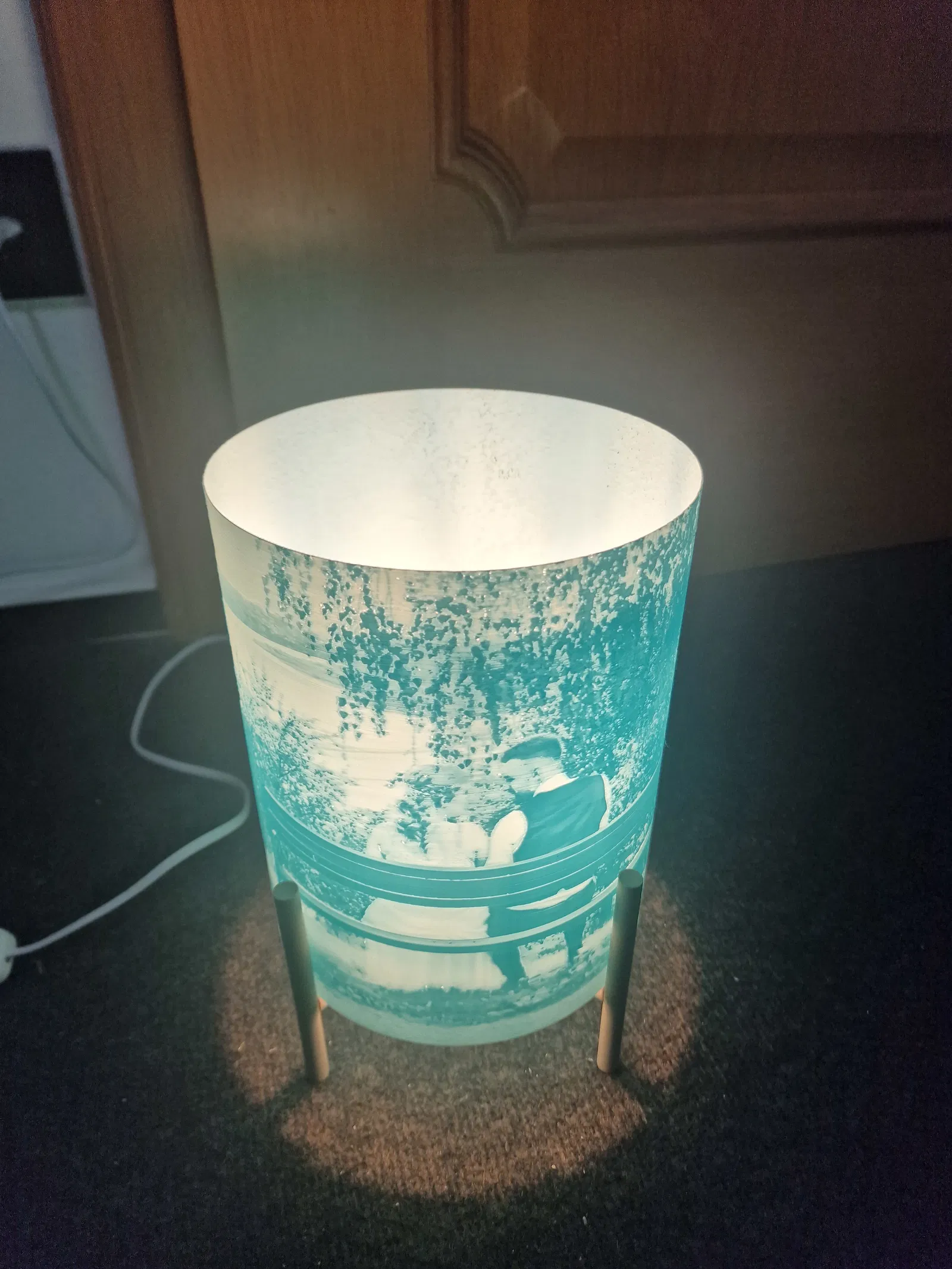 Phần đế chỉ cần ấn vô phần chân thôi, có khi phải dán thêm keo nữa. Nó fit với litophane đường kính 180mm.