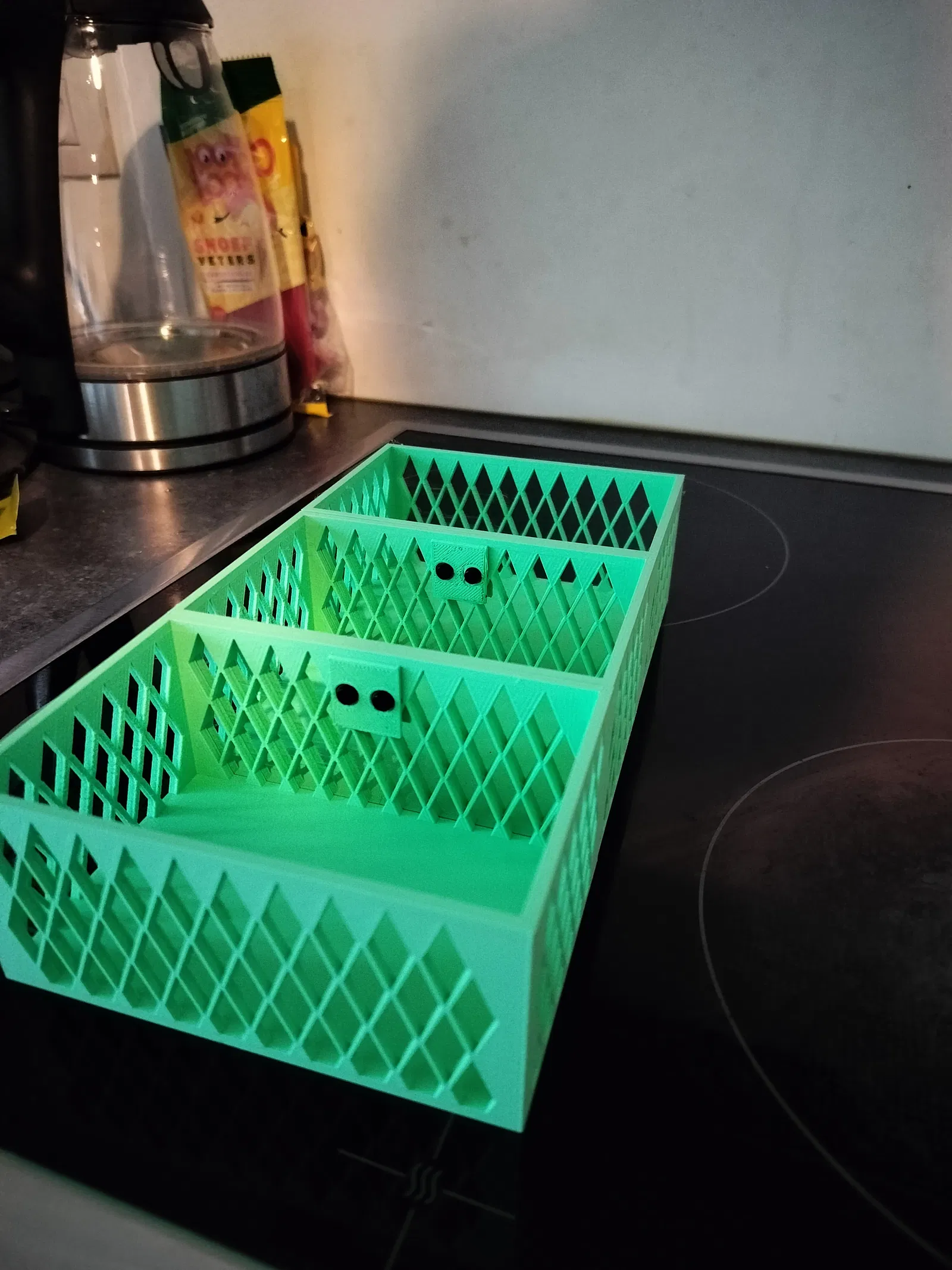 Muốn sắp xếp lại chỗ để đồ vệ sinh nên tạo ra cái thùng này, đặc biệt là không cần dùng đến support khi in. Phần khóa nối thì dùng ốc m3 dài 8mm.