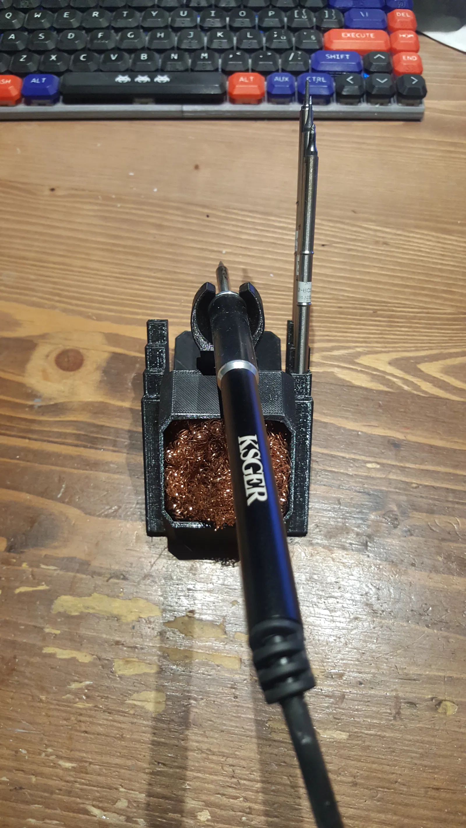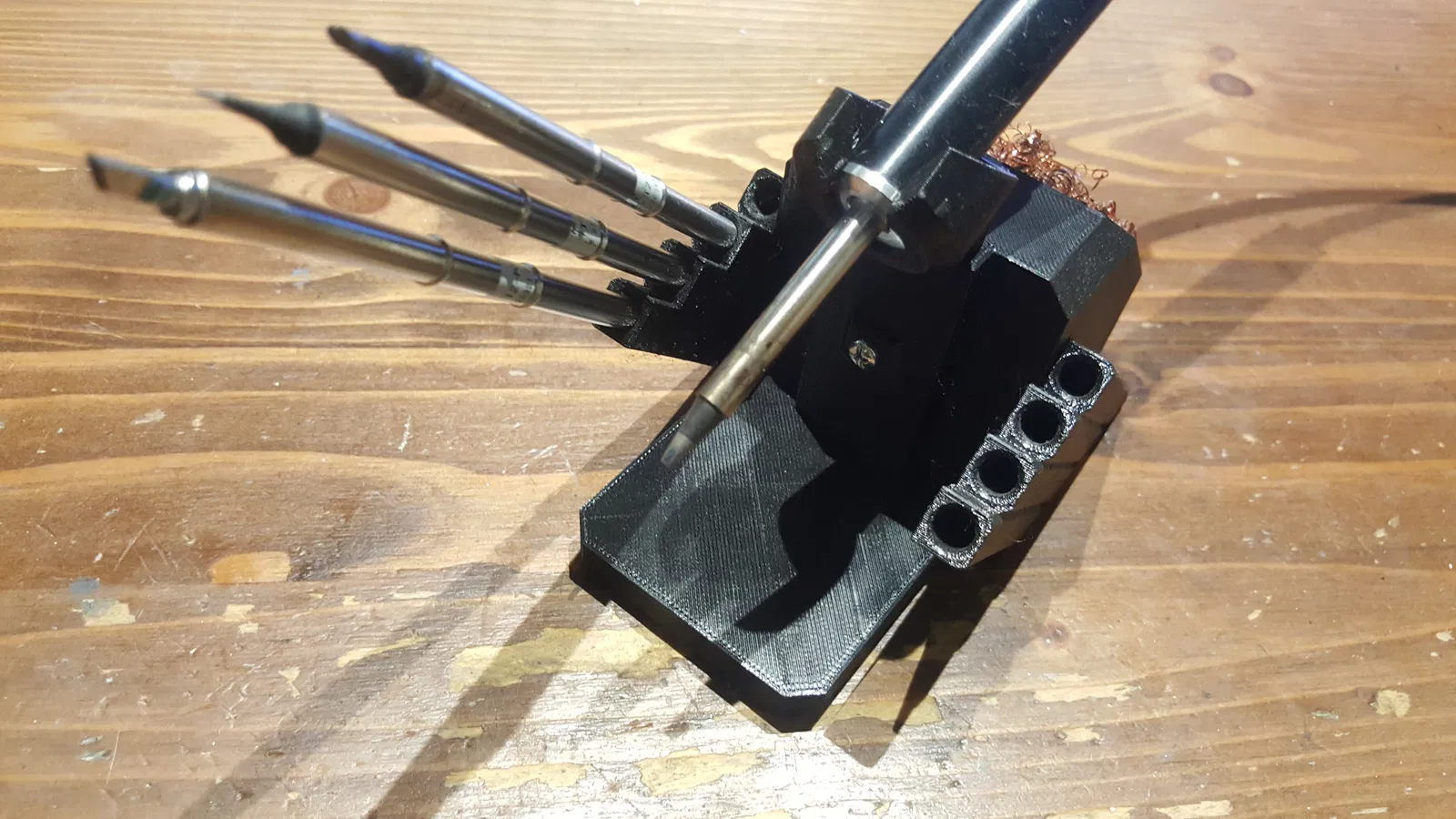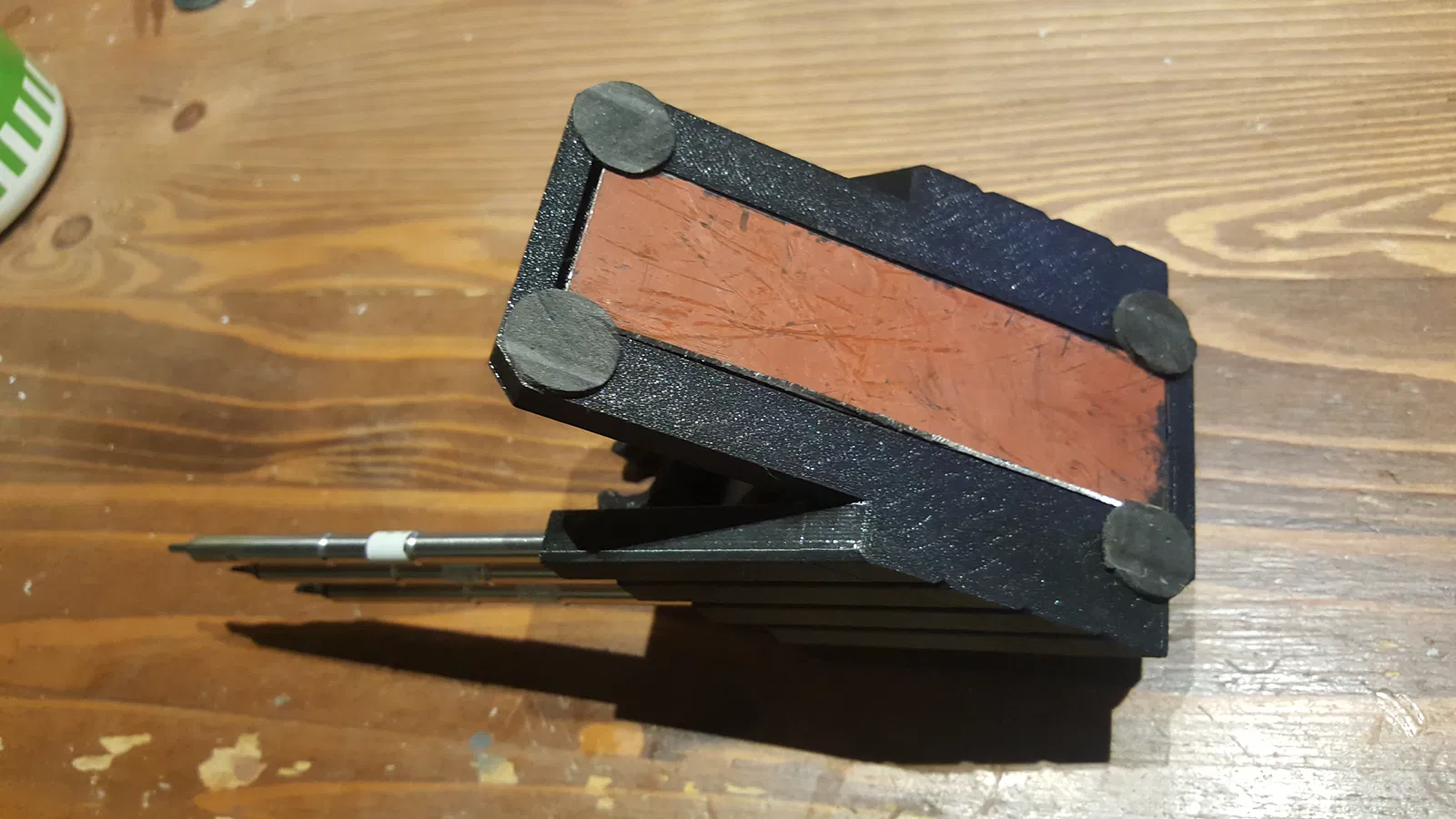PETG có vẻ giữ khá tốt vì đầu hàn chỉ hơi ấm lên ở chỗ tiếp xúc với đế. Phần đầu đế có thể bị hỏng theo thời gian sử dụng nên nó được thiết kế là một bộ phận riêng biệt có thể in lại dễ dàng.