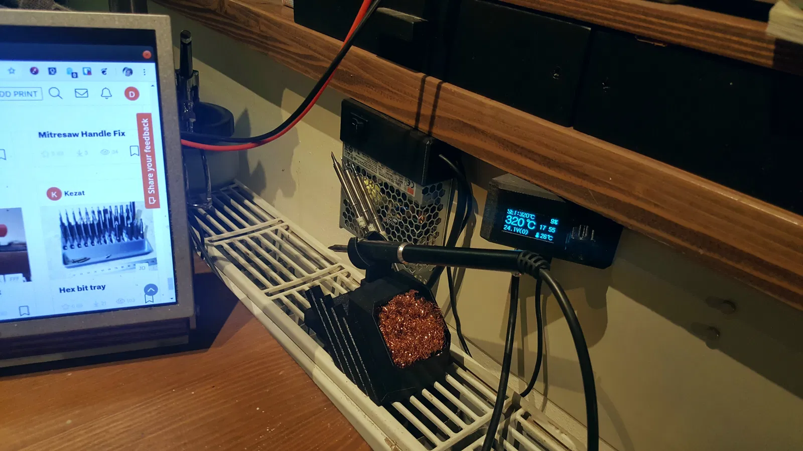 Tôi cần một cái đế gọn gàng cho trạm hàn của mình vì không gian làm việc của tôi khá chật chội... thực ra nó chỉ là cái bàn bếp thôi... gia đình cũng quen ăn ở chỗ khác rồi :-)