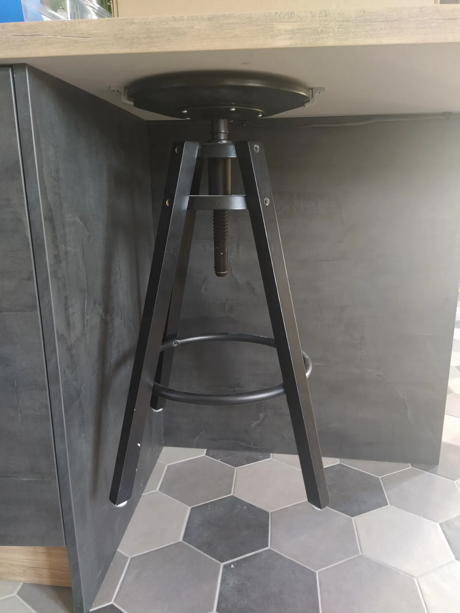 Dễ dàng vệ sinh không gian sống với giá đỡ ghế đẩu quầy bar, thiết kế thông minh giúp nâng ghế, tạo lối đi thông thoáng cho máy hút bụi hoặc robot dọn dẹp. Dựa trên mẫu DALFRED của Ikea, in bằng PETG.